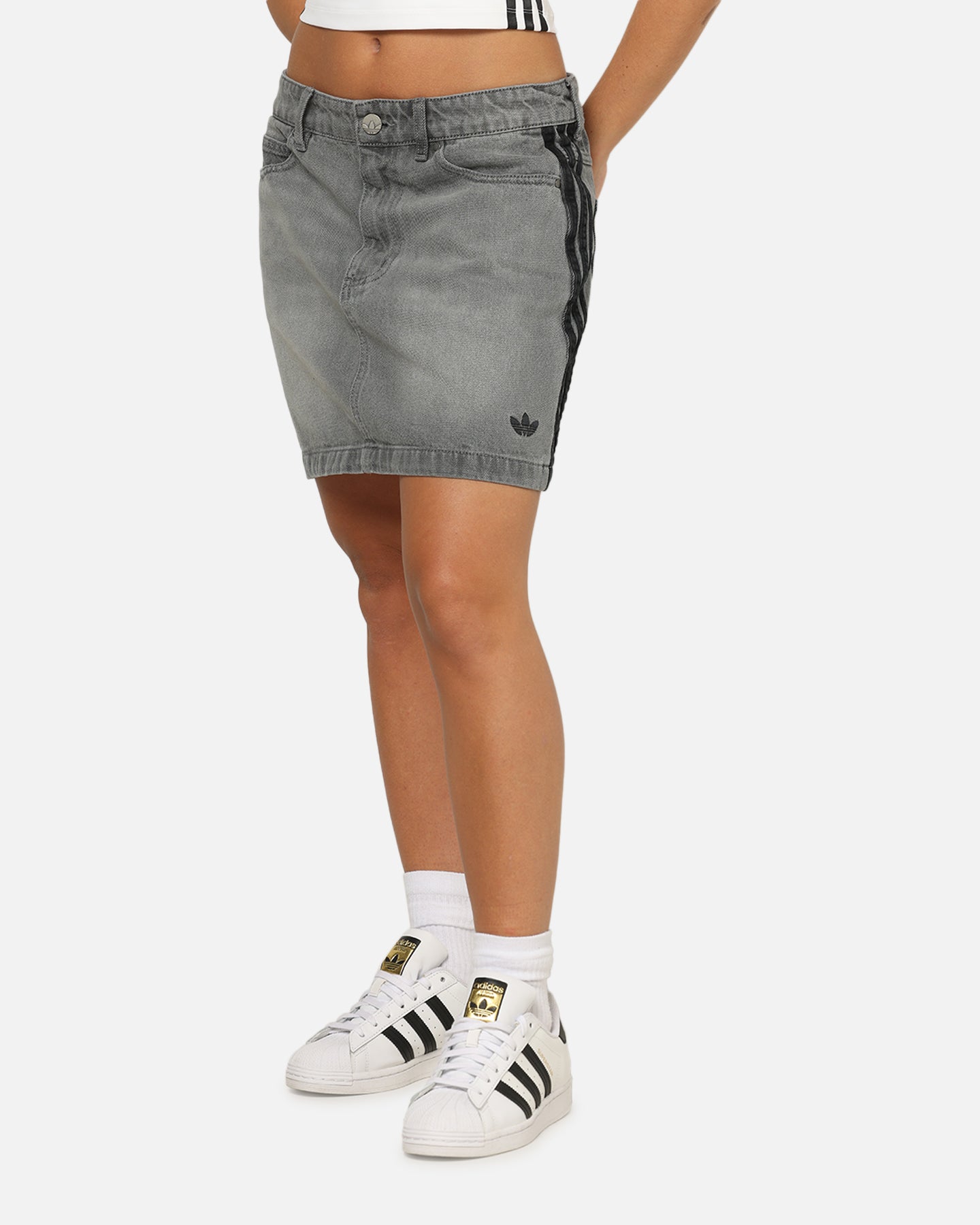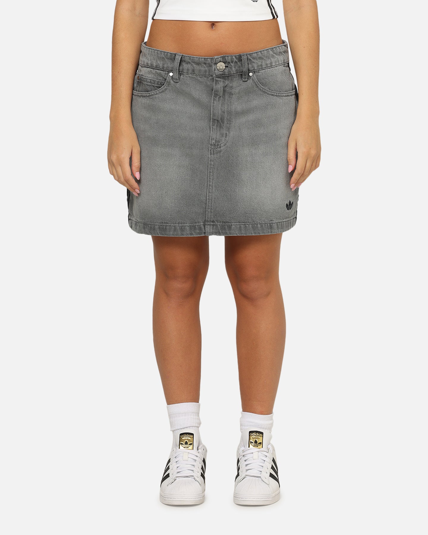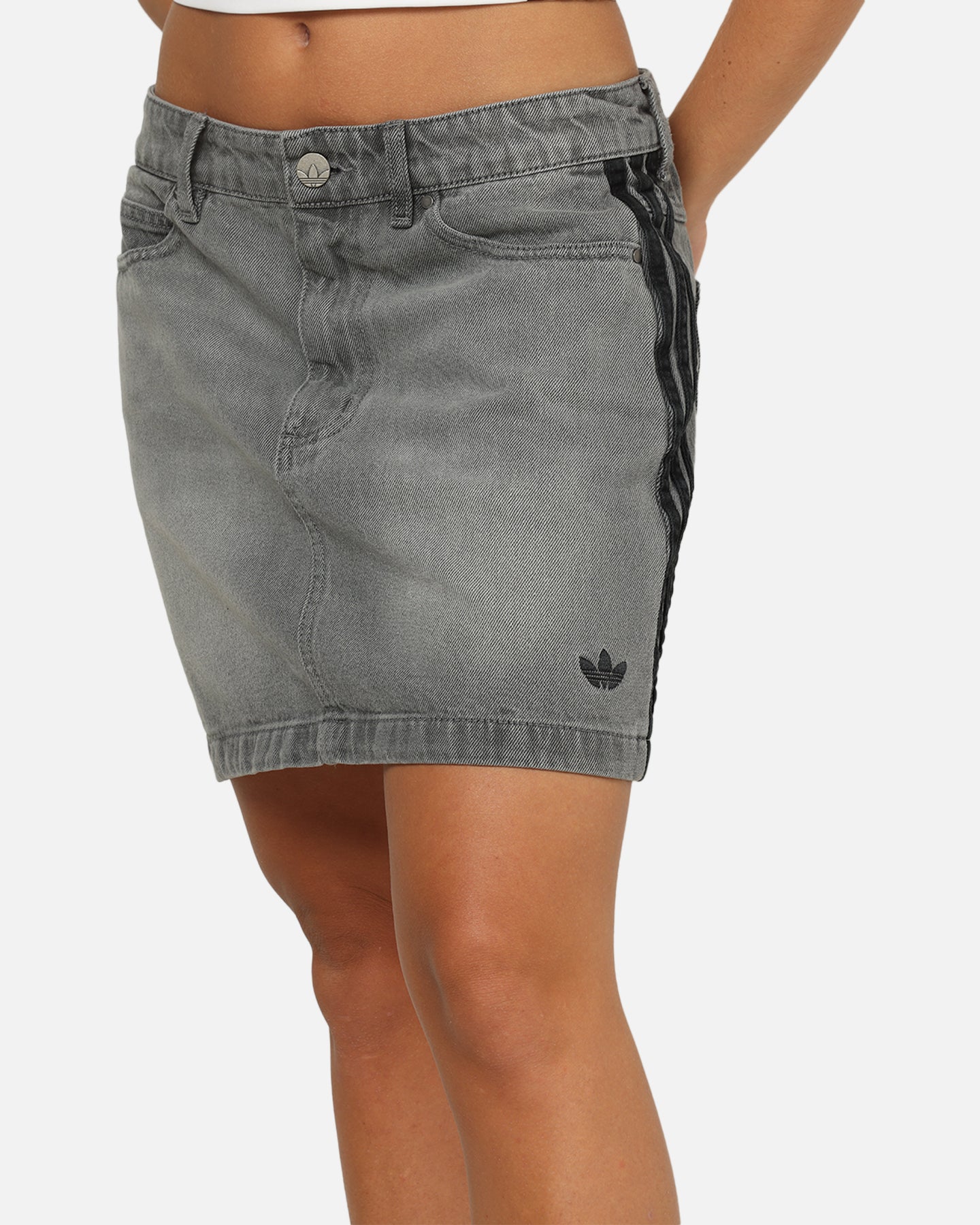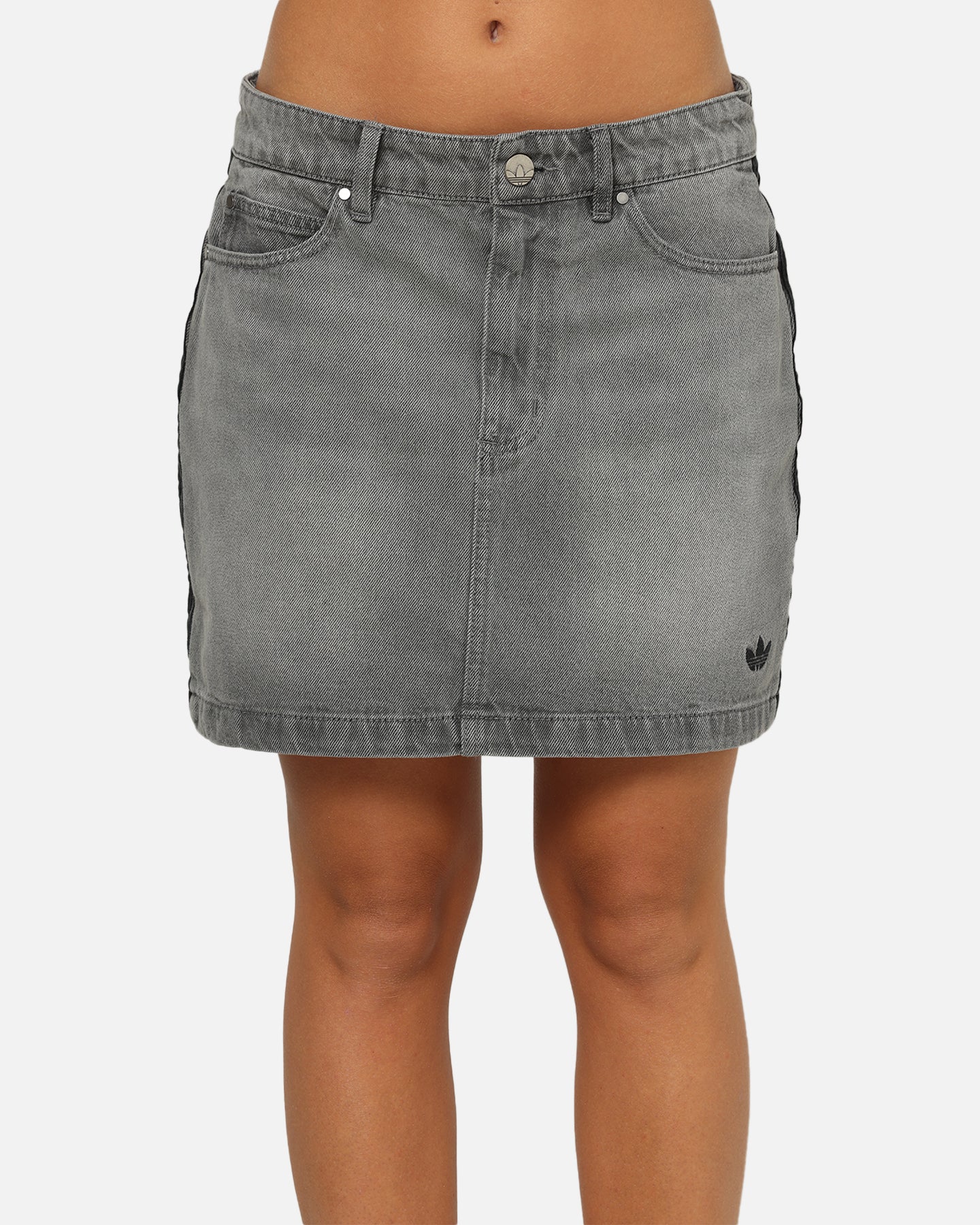 Fusing retro vibes and modern style, this adidas mini skirt is an easy win for your everyday wardrobe. Made from soft denim, it has a classic five-pocket design with belt loops and a button fly, just like jeans. Signature 3-Stripes down the sides give it that iconic adidas finish. Cop yours today at Culture Kings.- Embroidered logo- Signature 3-Stripes- Denim- Vintage wash- Zip fly and button closure- Belt loops- Mini length- Regular fit- Material: 100% cotton- Colour: Washed Grey- Style: JW2657