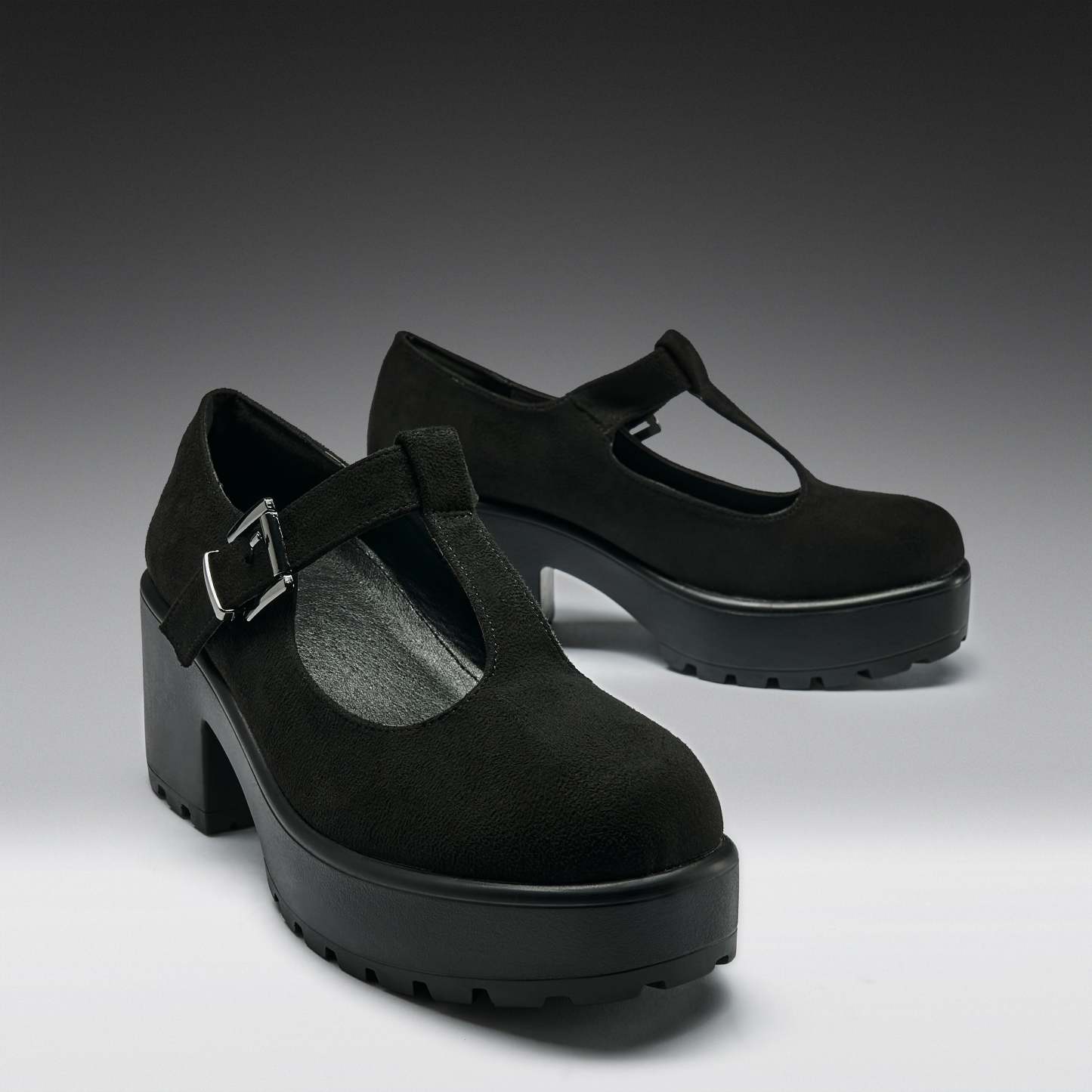 These Black Suede T-Bar Chunky Platform Mary Janes are made from a velvety smooth faux suede offering a sleek matte finish. The insole is padded throughout, matched with PU lining make these a pair you can wear comfortably all day.