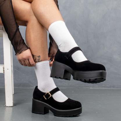 These Black Suede Single Strap Chunky Platform Mary Janes are made from a velvety smooth faux suede offering a sleek matte finish. The insole is padded throughout, matched with PU lining make these a pair you can wear comfortably all day.