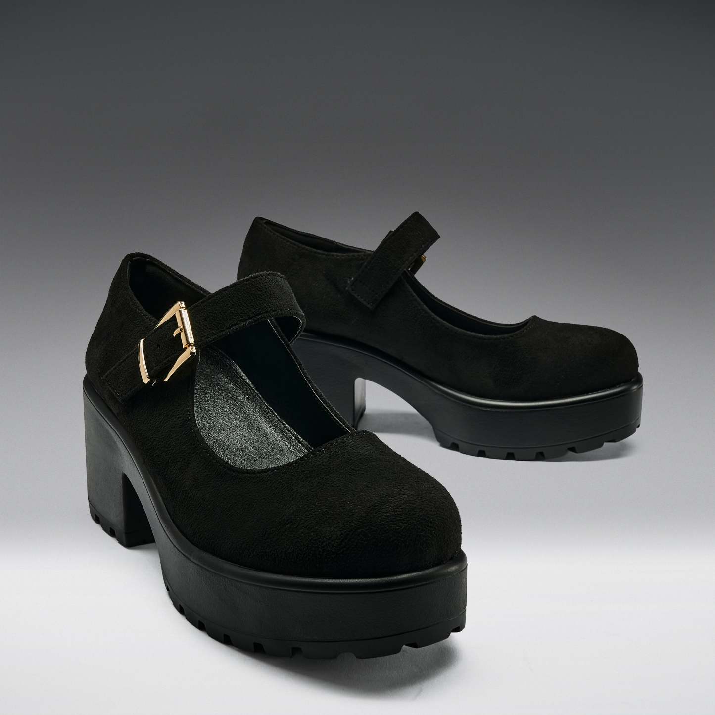 The chunky 3" platform is sturdy and gives you just a bit of height without adjusting the way you walk! The suede finish on these Mary Janes makes these incredible versatile, whether it’s a classic back to school Mary Jane look or a more chic look, these shoes serve as your ultimate canvas for self-expression, adapting seamlessly to your unique style.