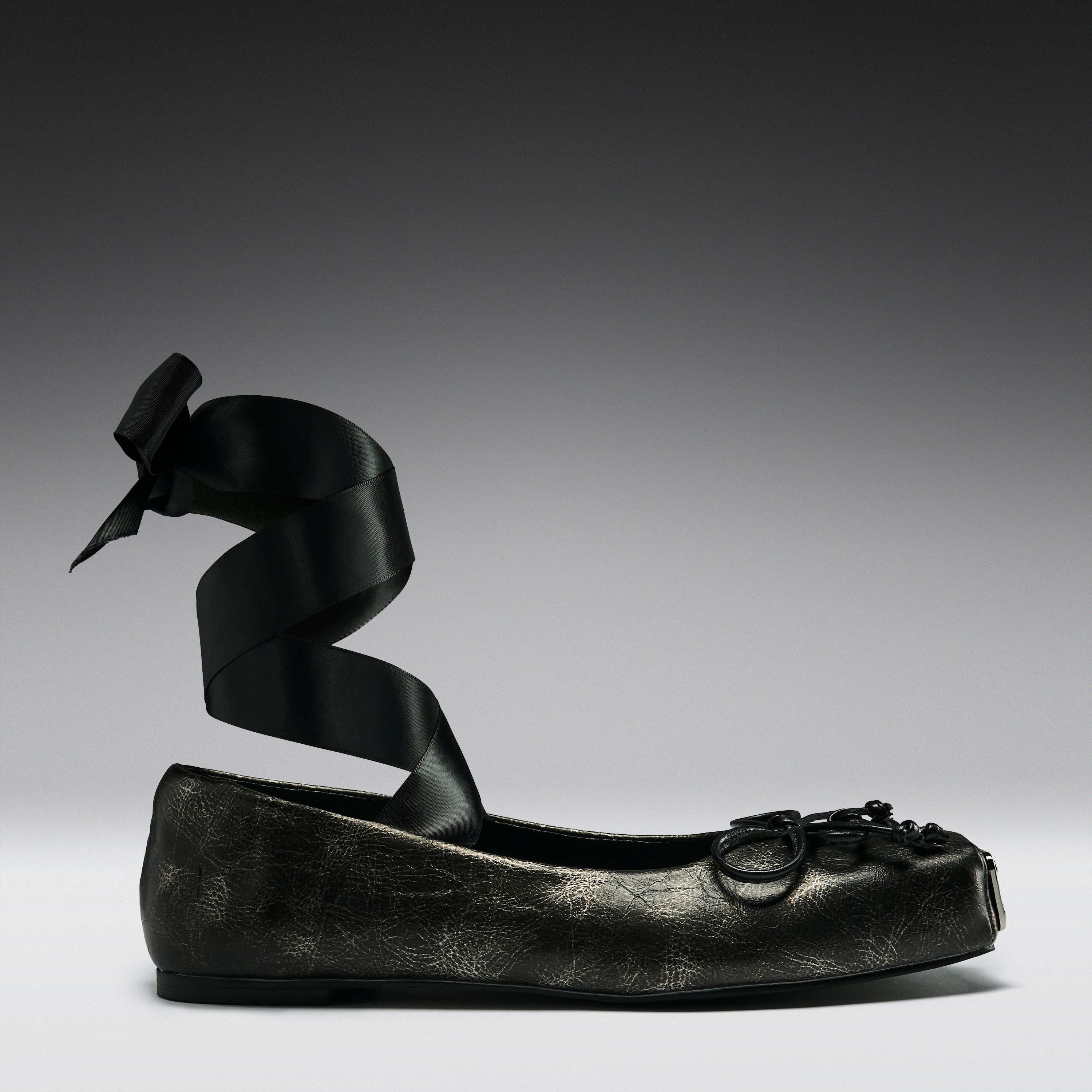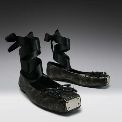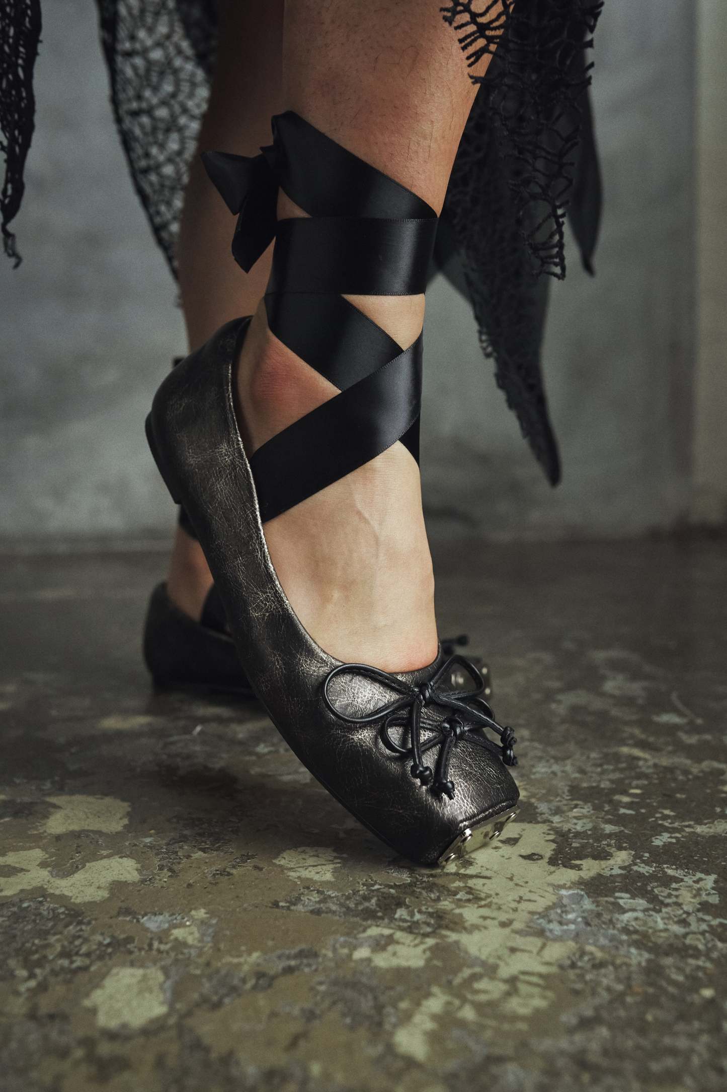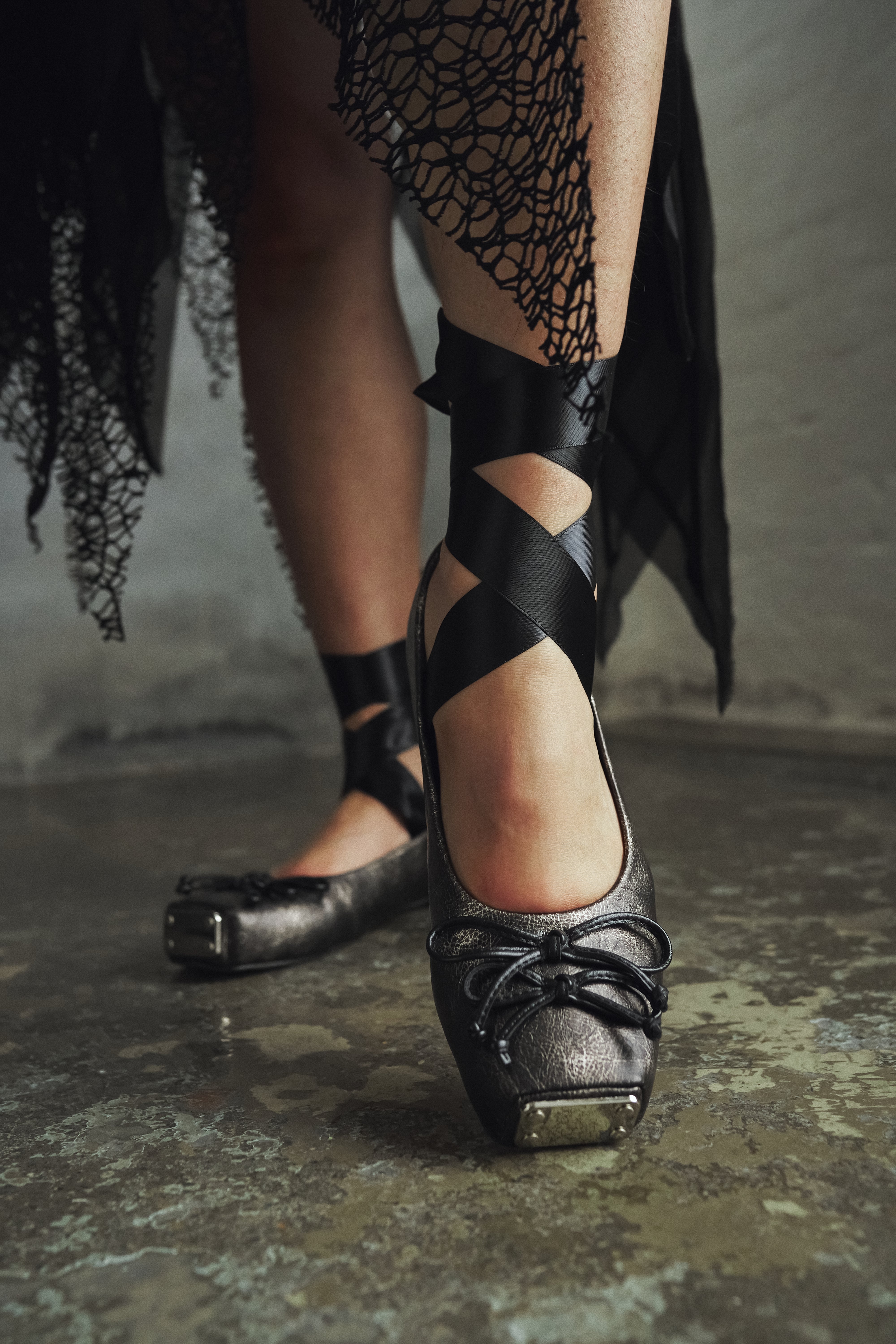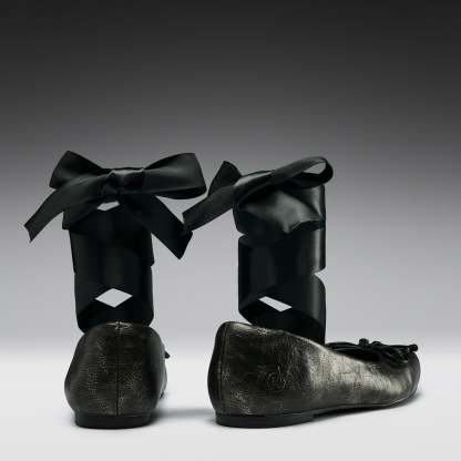 This pair was designed to keep the elegance of a classic ballet shoe but ground it in something a little tougher. The silhouette is soft and minimal, finished with a flat snub-nosed toe that gives the shoe its distinct shape while allowing plenty of room for comfort.