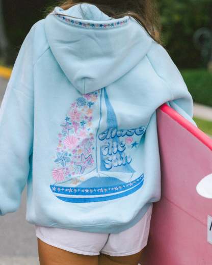 “Chase the Sun” Relaxed Hoodie in Sky Blue