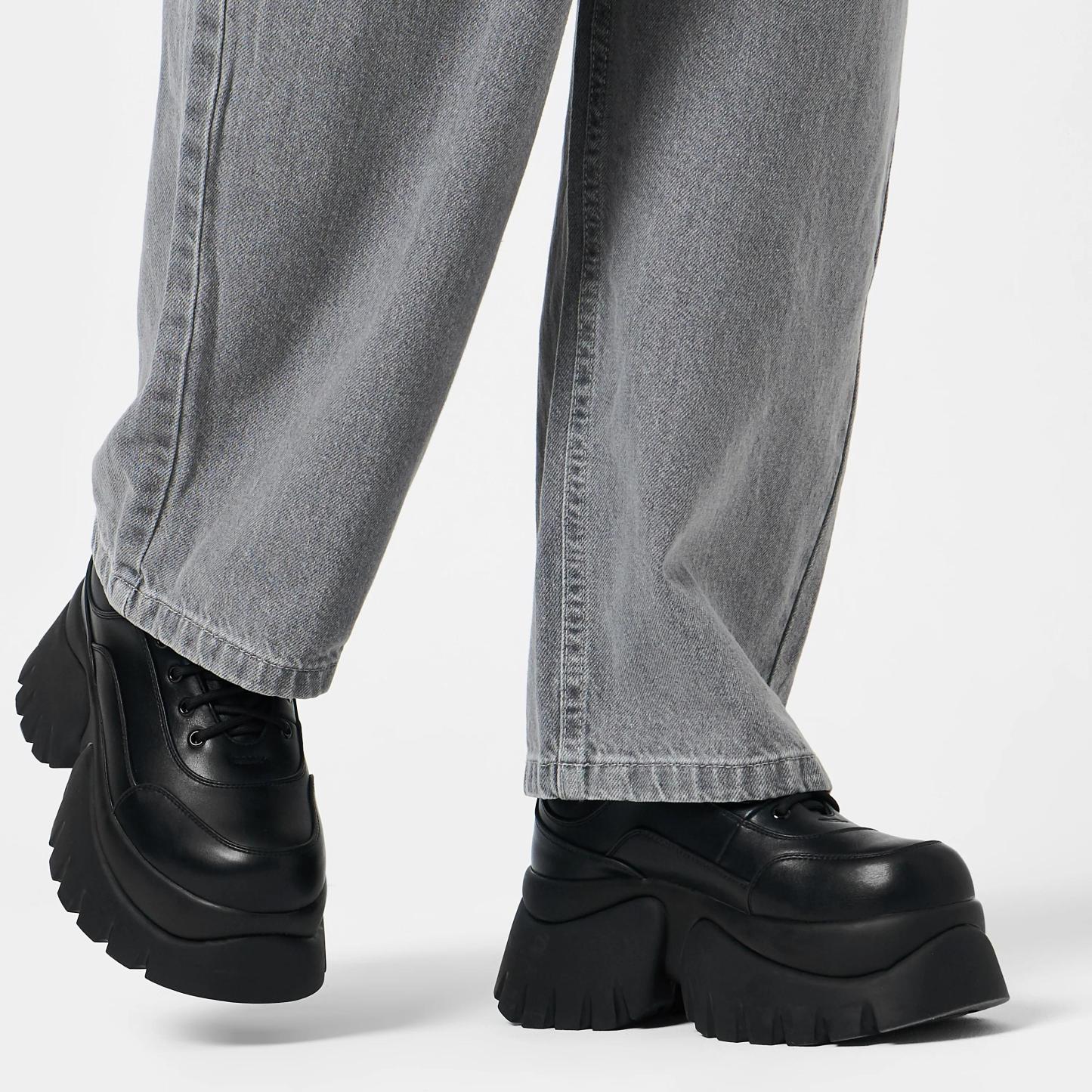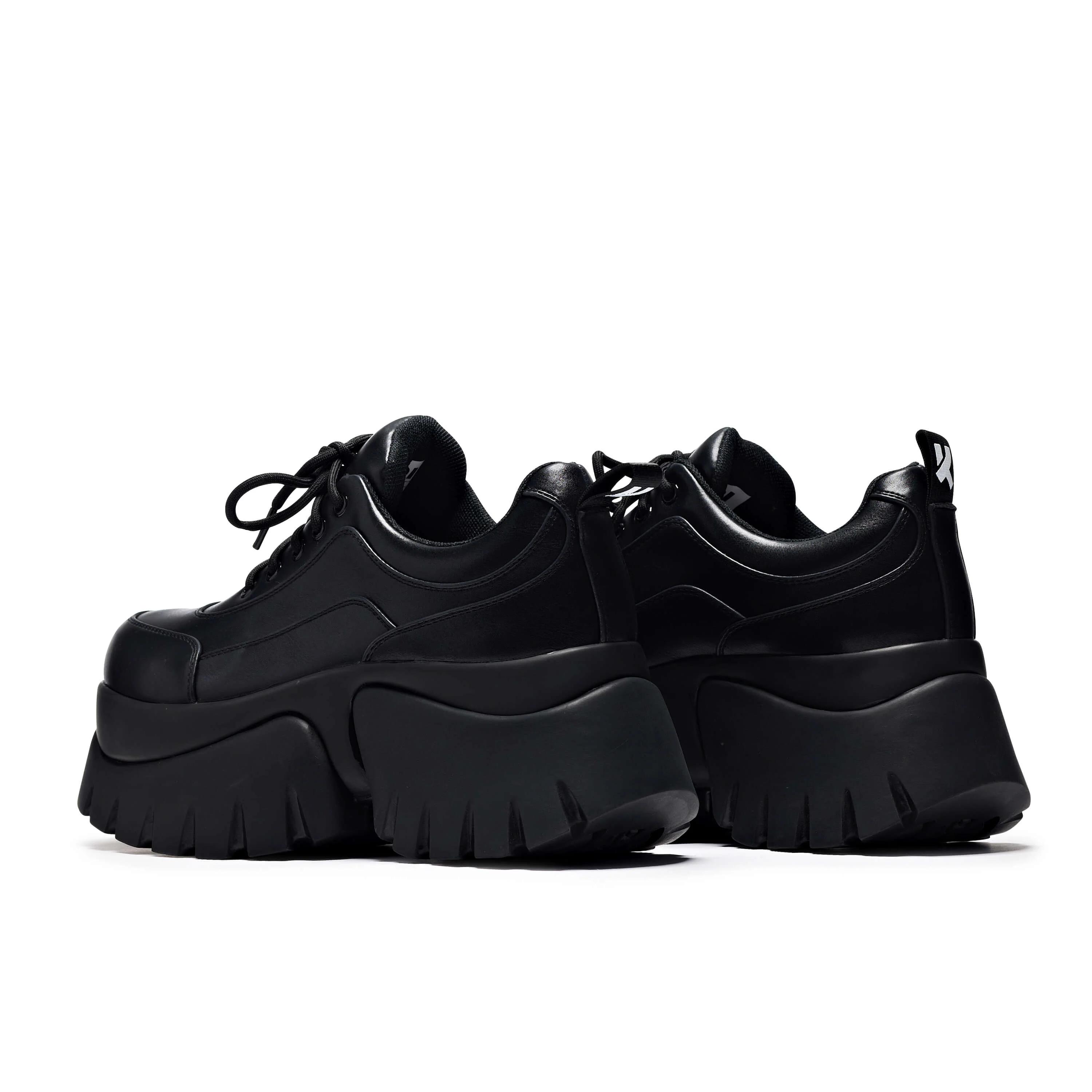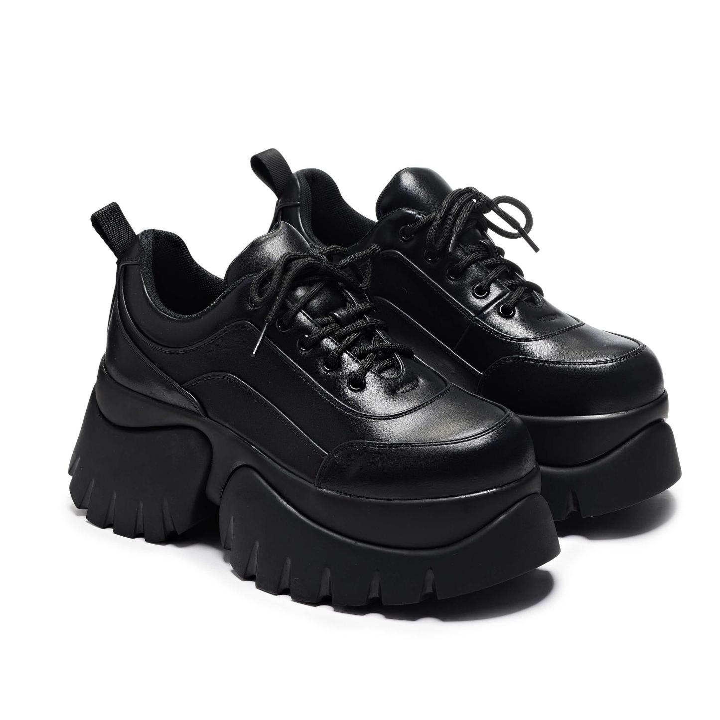 Every wardrobe needs the perfect all black trainers - so why not go all-out and try KOI's chunky platform sneaker? These women's trainers are all black and have cushioned comfort due to the soft vegan leather, to keep you comfy and protected all day long, even in the summer showers. These chunky trainers feature intricate stitching, too. Take the world by storm - lace up and get ready to go!
