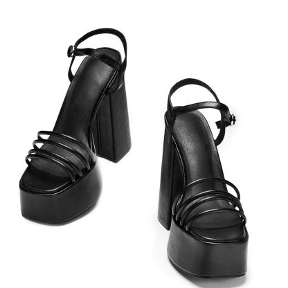 Elevate your style with Cosette Black Platform Strappy Heels. Bold and chic, these heels feature a platform design for added height and a strappy design for a playful touch. In classic black, these heels are a versatile addition to any wardrobe. (Rock these strappy bad boys on your next night out!)