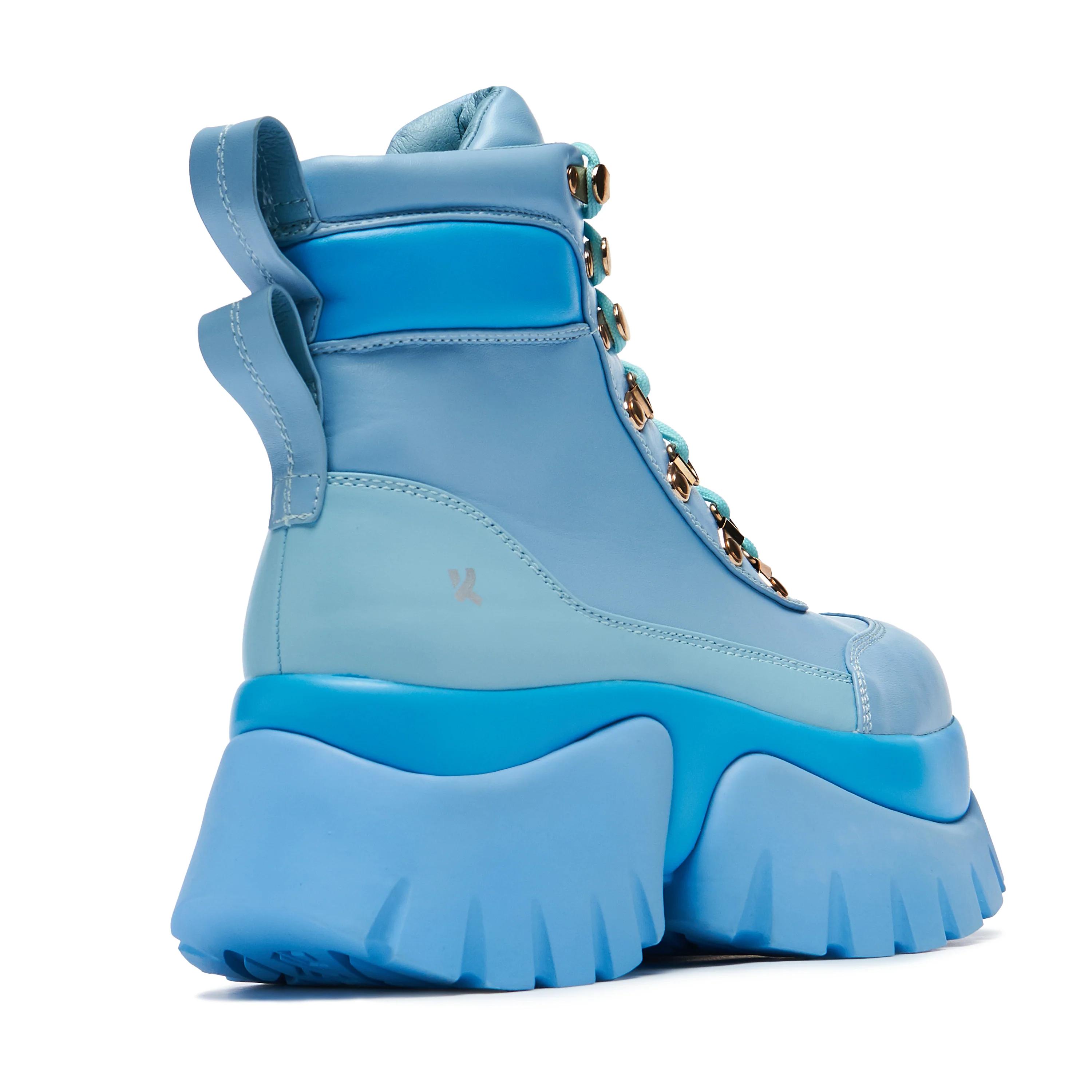 The Crybaby Blue Vilun Platform Boots were designed by Melanie, based off an iconic KOI silhouette. When being designed by Melanie, the exact tones of blue to be featured were chosen with love and consideration. Melanie and KOI viewed hundreds of colour swatches before landing upon the dreamiest blue colour combination ever seen.