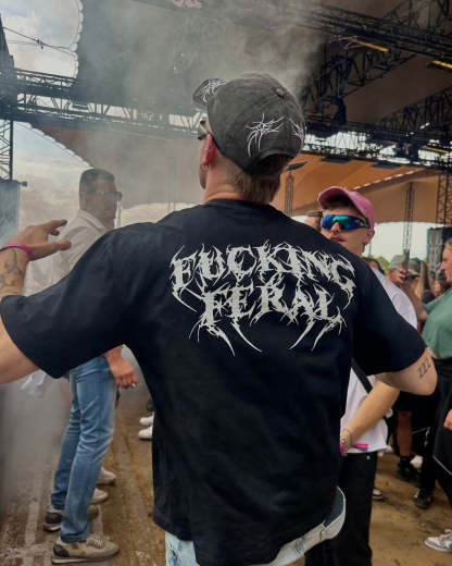 Made from 240gsm, luxury cotton, this tee features a unique "Fucking Feral" graphic on the back and a feral logo on the front chest.
