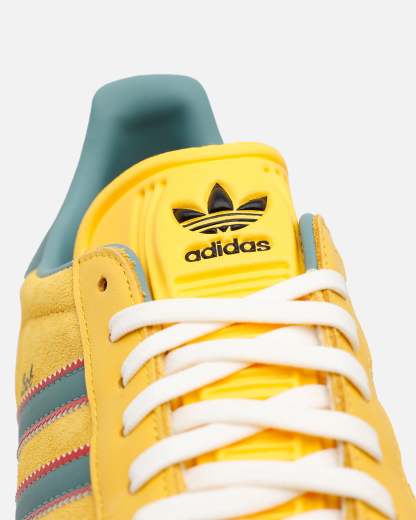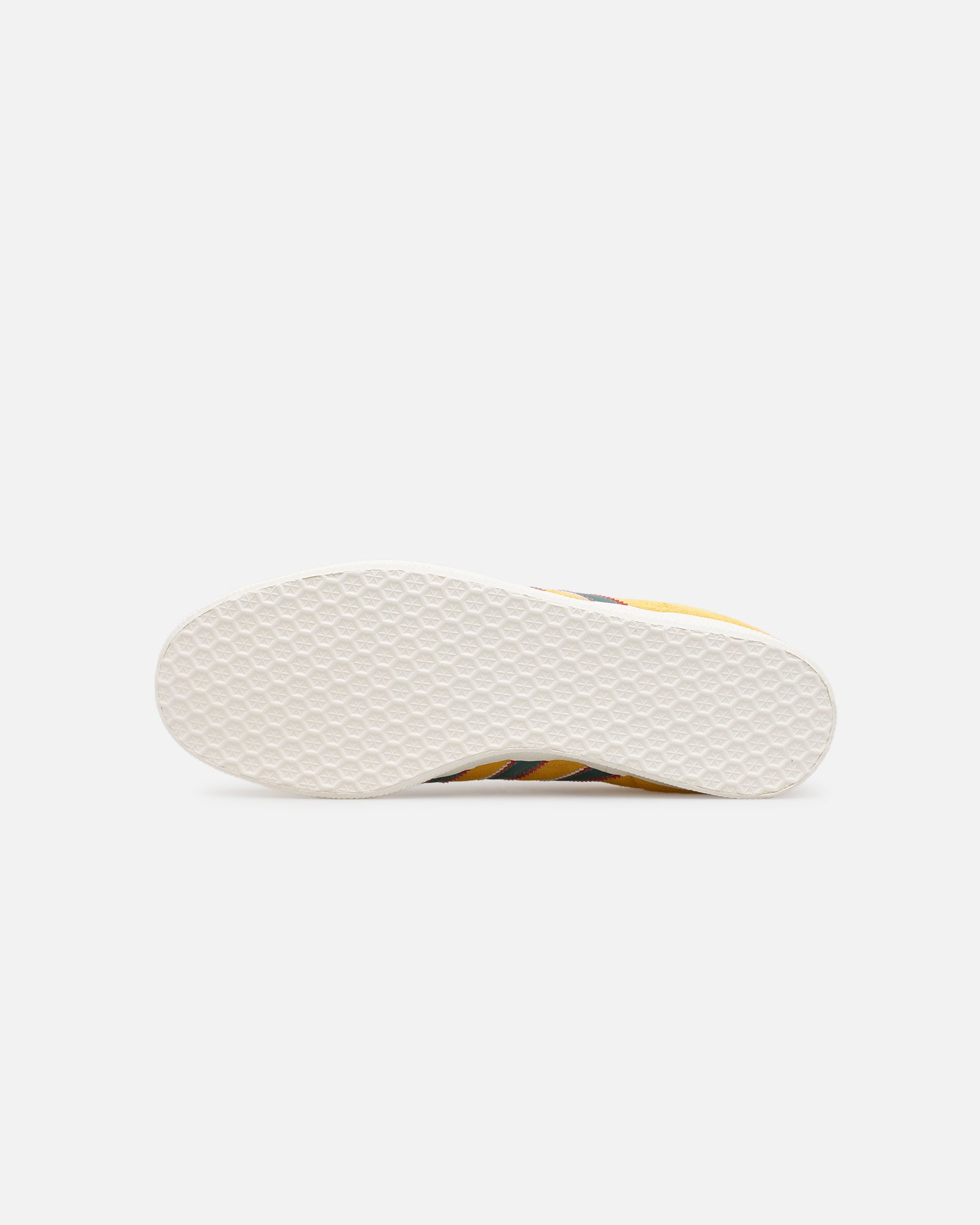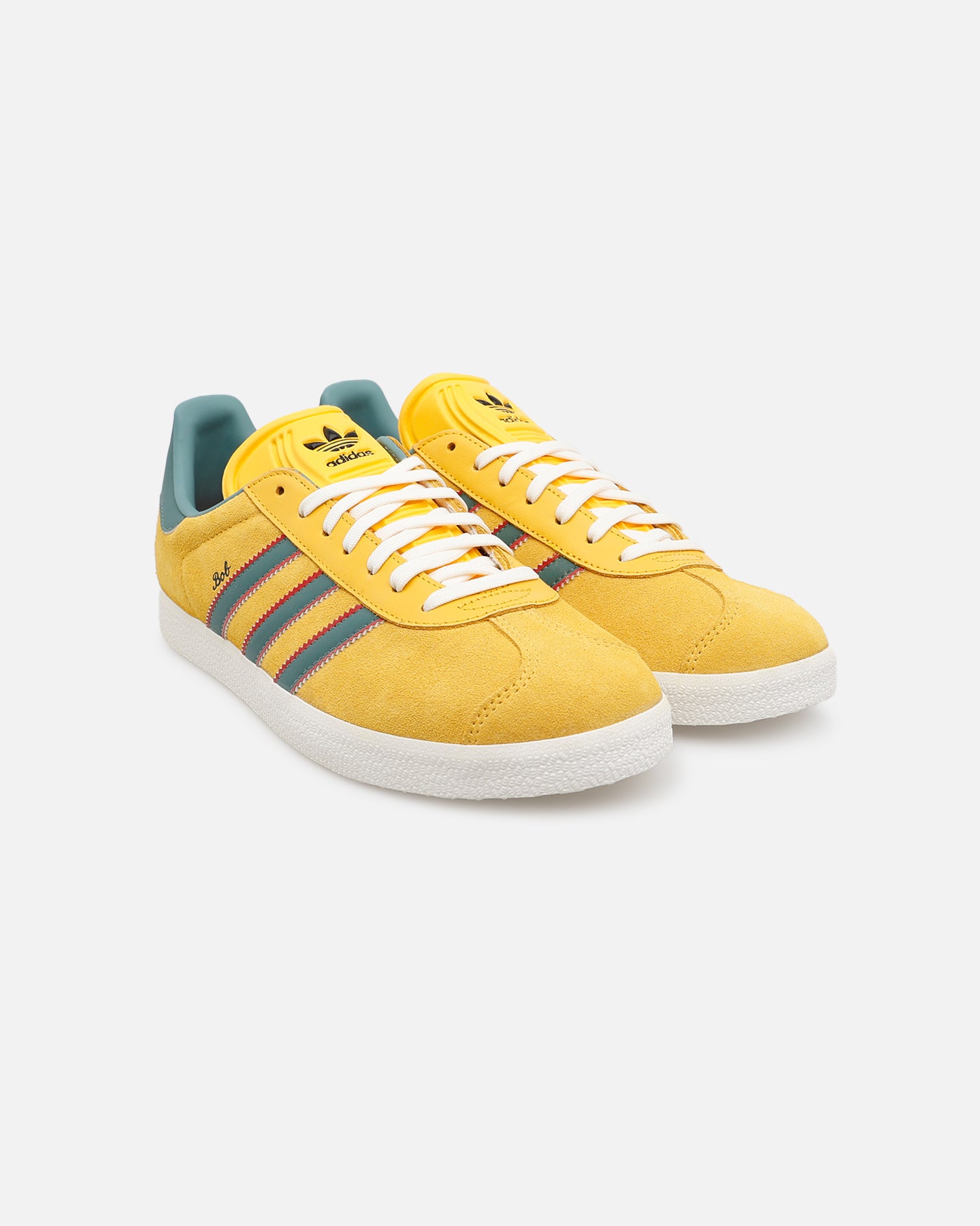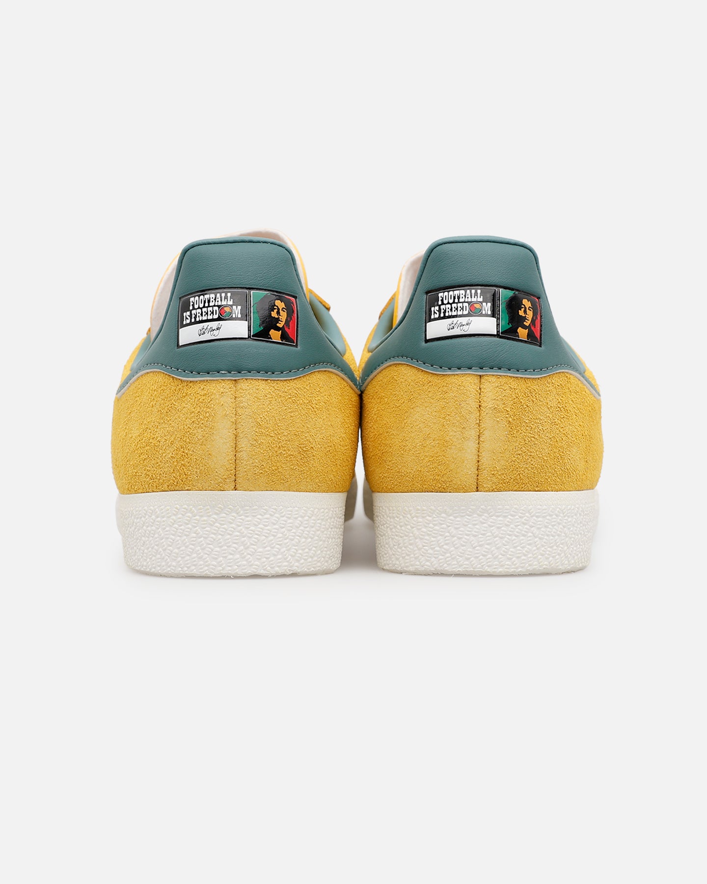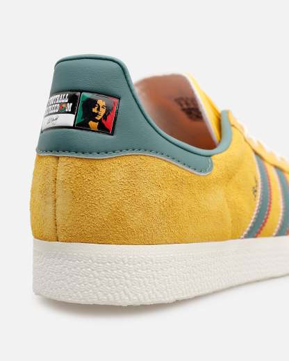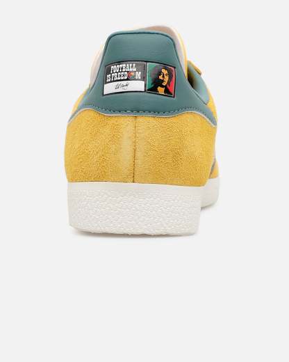 adidas Gazelle Jamaica x Bob Marley Shoes are a pure classic. Since 1966, they've been a go-to for timeless style and versatility. This version nails the 1991 look with authentic details—think premium suede and that iconic molded tongue included. Cop yours today at Culture Kings.- Leather upper- Synthetic lining- Suede accents- Rubber outsole- Padded collar- Rubber outsole- Lace-up closure- Low-cut silhouette- Colour: Yellow- Style: KJ3532