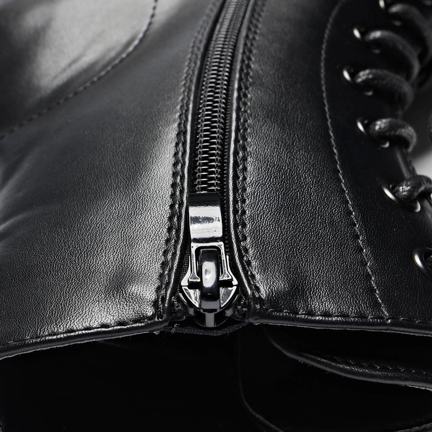 - Side zip + lace up