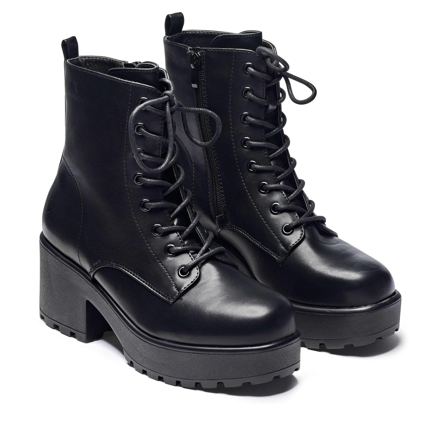 Grunge it up in these lace up boots to update dresses, jeans and everything in between, available here in a smooth faux leather