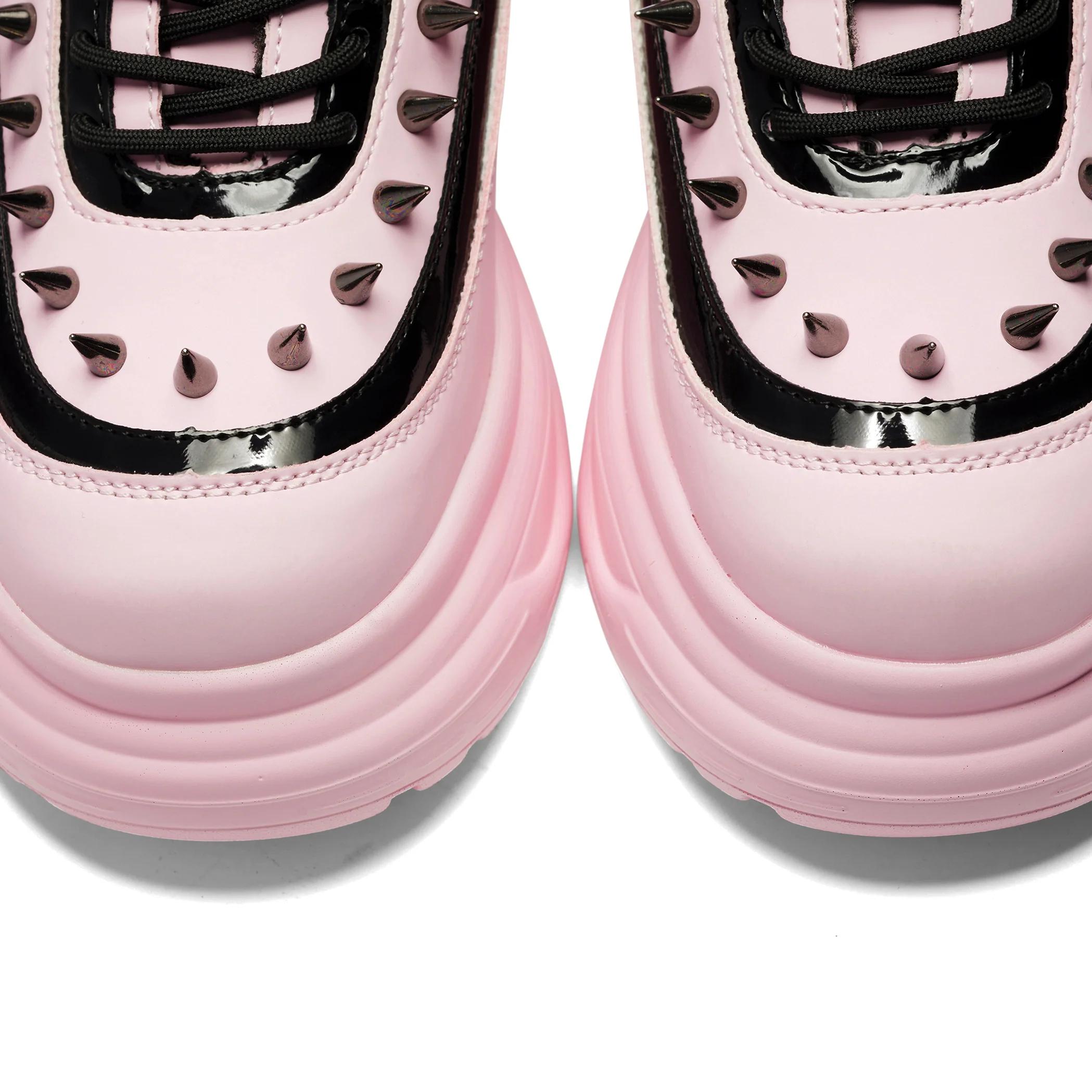 For a Pop of Pink with a Dash of Edge! These Yami Kawaii trainers are the perfect blend of sweet and sassy, with their bold pink color and striking black details. The spikes add a touch of attitude, while the chunky design ensures that you'll be comfy and stylish all day long. Whether you're embracing your alternative side or just adding some spark to your daily look, the Haruna Pink Yami Trainers are the perfect choice. Step up your shoe game and add these trainers to your collection today!
