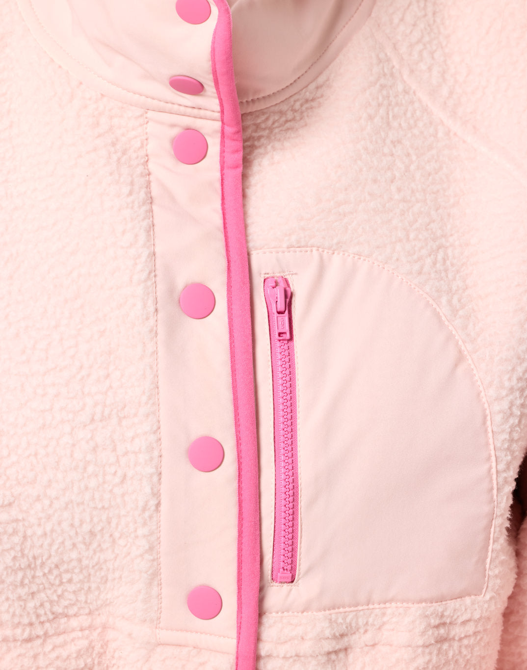 The Horizon Layer-Up jacket is an ideal layering piece for heading to your favourite studio class or as a stylish après-class essential. Designed with a relaxed fit, it features a funnel woven neck, a convenient zip chest pocket, and side pockets. Finished with contrasting snap fastening and contrasting woven trims, Looks great paired with our Lotus Lounge Set or Relentless Bike Shorts.