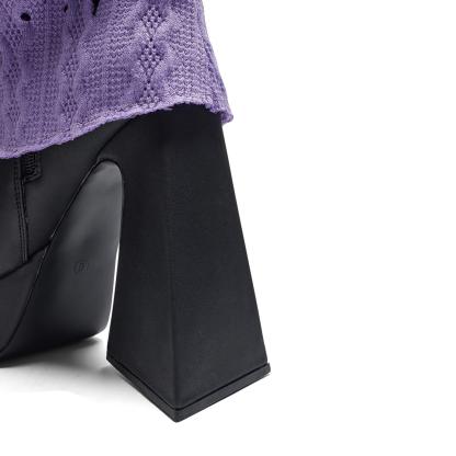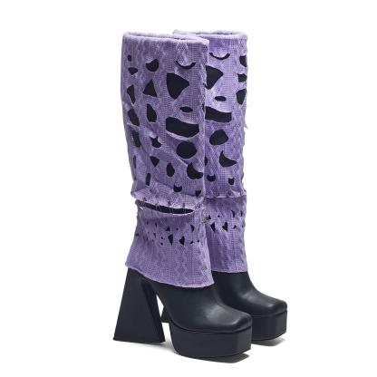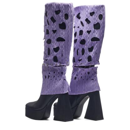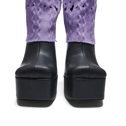 These Jam Monster Heeled Long Boots will crush the competition! Step out in style with these chic purple knit layer knee-high boots featuring a chunky platform and a seriously grab-worthy heel. Get ready for all eyes to be on you!