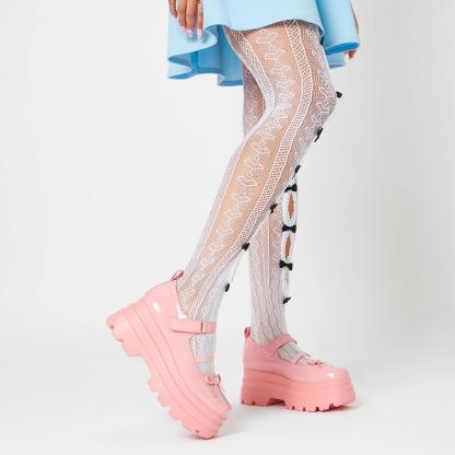 Introducing the Trident Mary Janes: a KOI staple that embodies both timeless charm and playful kawaii spirit. Now reimagined in a warm pink hue, these shoes offer a fresh take on a classic. Crafted from soft, comfortable vegan leather with a glossy patent finish. Whether you're embracing sweet or bold aesthetics, the Trident Mary Janes provide a versatile foundation for endless styling possibilities.