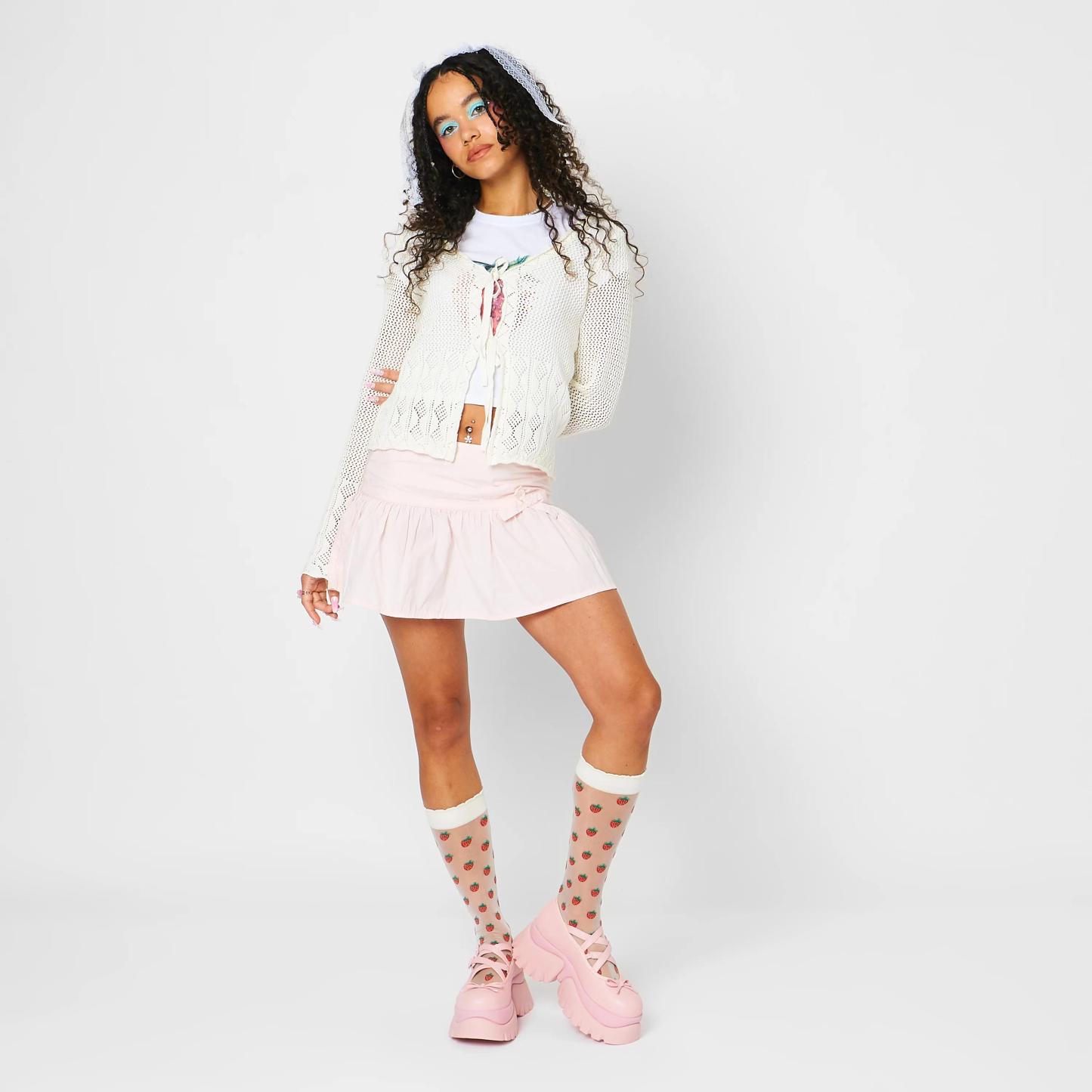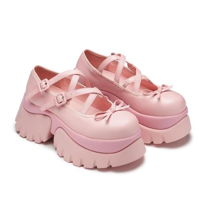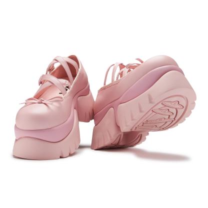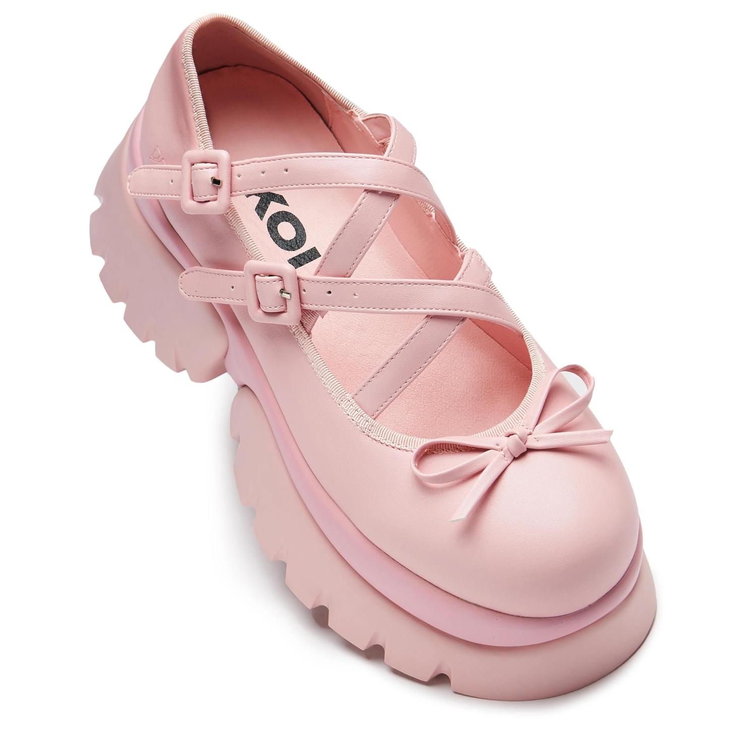 Ballet shoes with a sporty twist. Featuring a classic ballet upper with supporting details, such as criss-cross straps that offer both style and security, paired with our "monster" platform it creates for a cute but chunky aura. The straps are specifically designed to snugly hold the foot in place, ensuring comfort for hours of wear. Initially, we were concerned that the size of the platform might make them feel clunky, but after extensive internal testing, we��re proud to say this is one of our most comfortable styles yet. The "monster" outsole provides just the right amount of weight and support, all while maximizing coziness. And, of course, these elements don��t just feel great, they look incredible too! Finished in pastel pink, this style strikes the perfect balance between sporty, practical, and modern. Can be dressed super cute, or more casual.