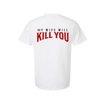 Say it without saying it. The My Wife Will Kill You Tee is for the guy who knows how to flirt with danger��just not with other women. Featuring bold text on a soft, easy-to-wear tee, this shirt delivers a playful warning that��s equal parts funny and fearless.
