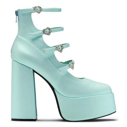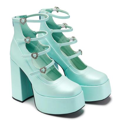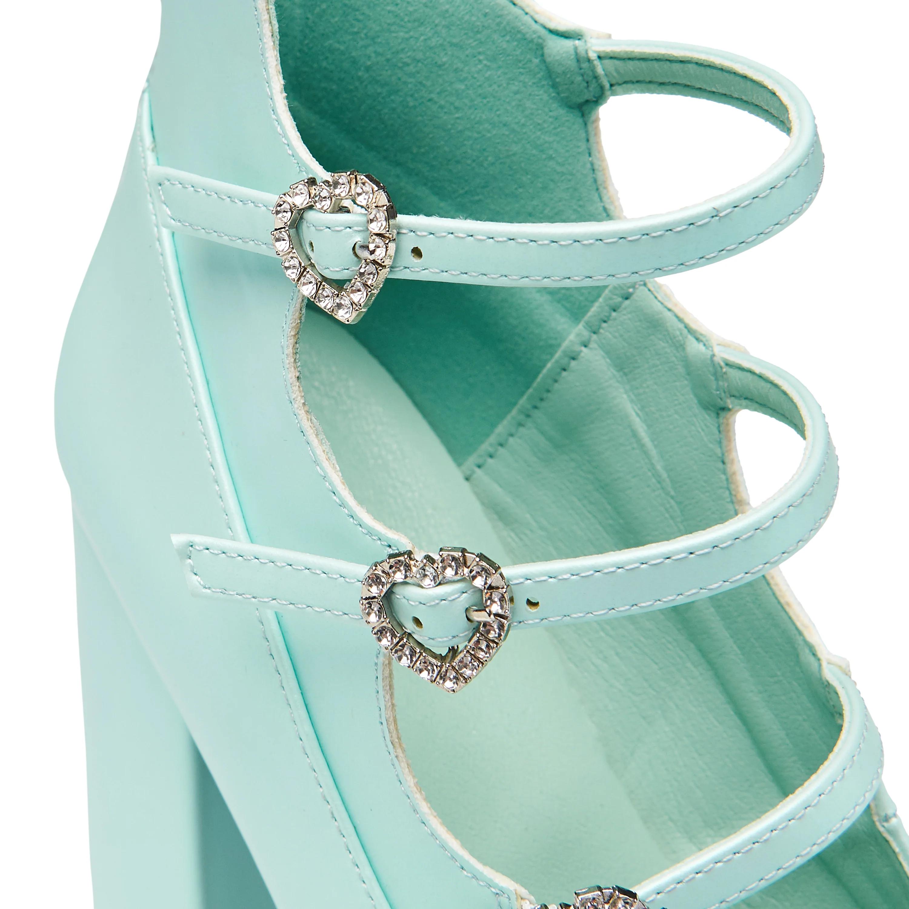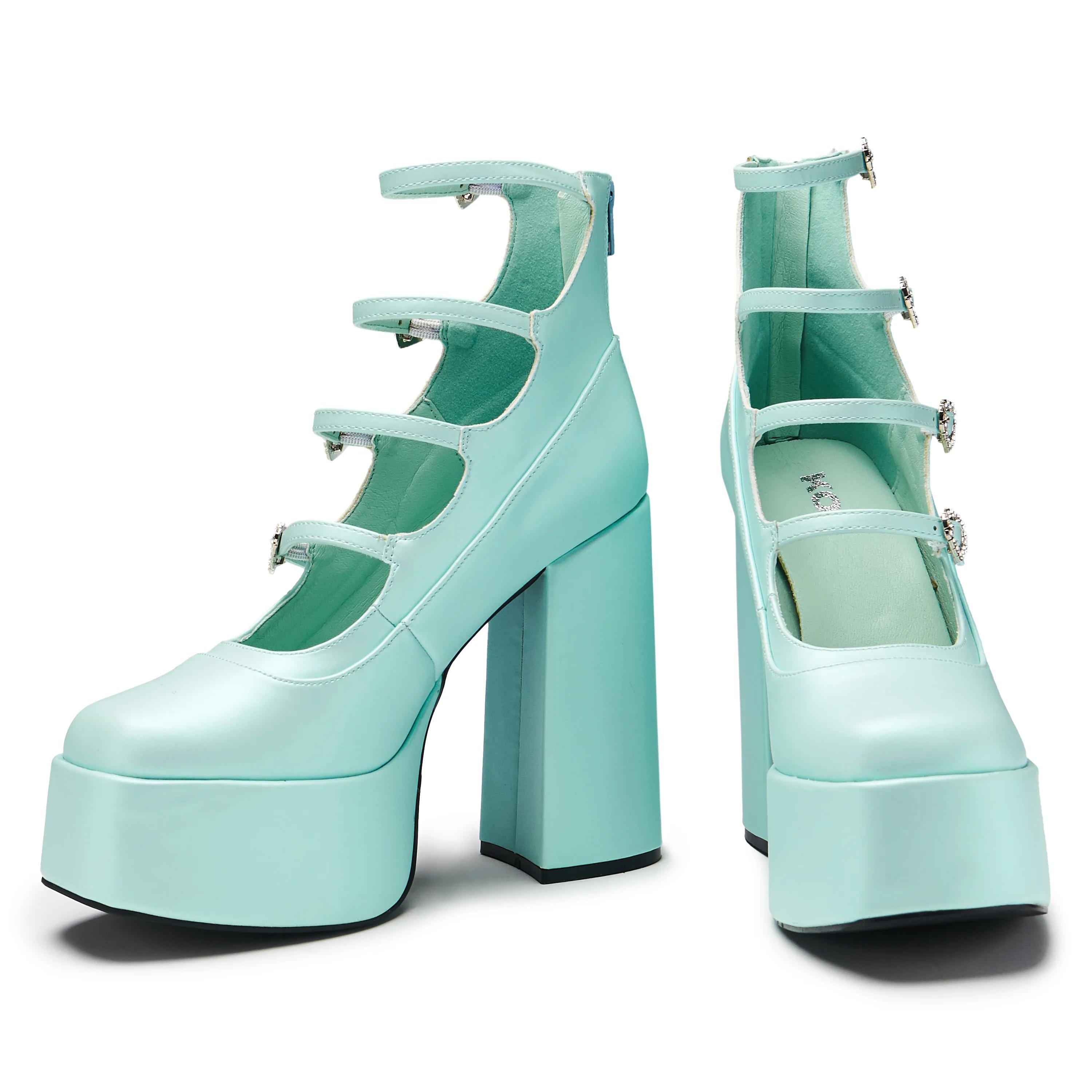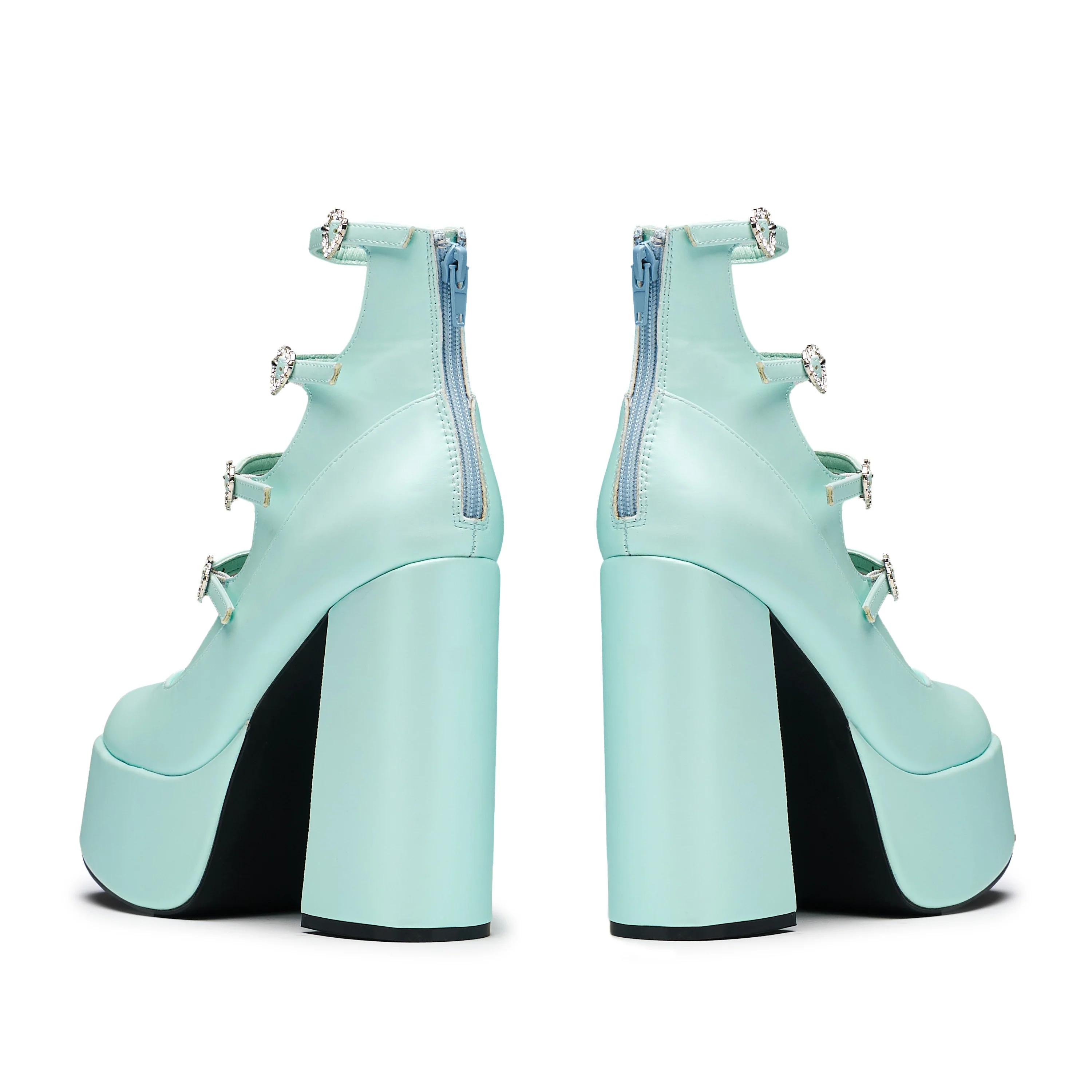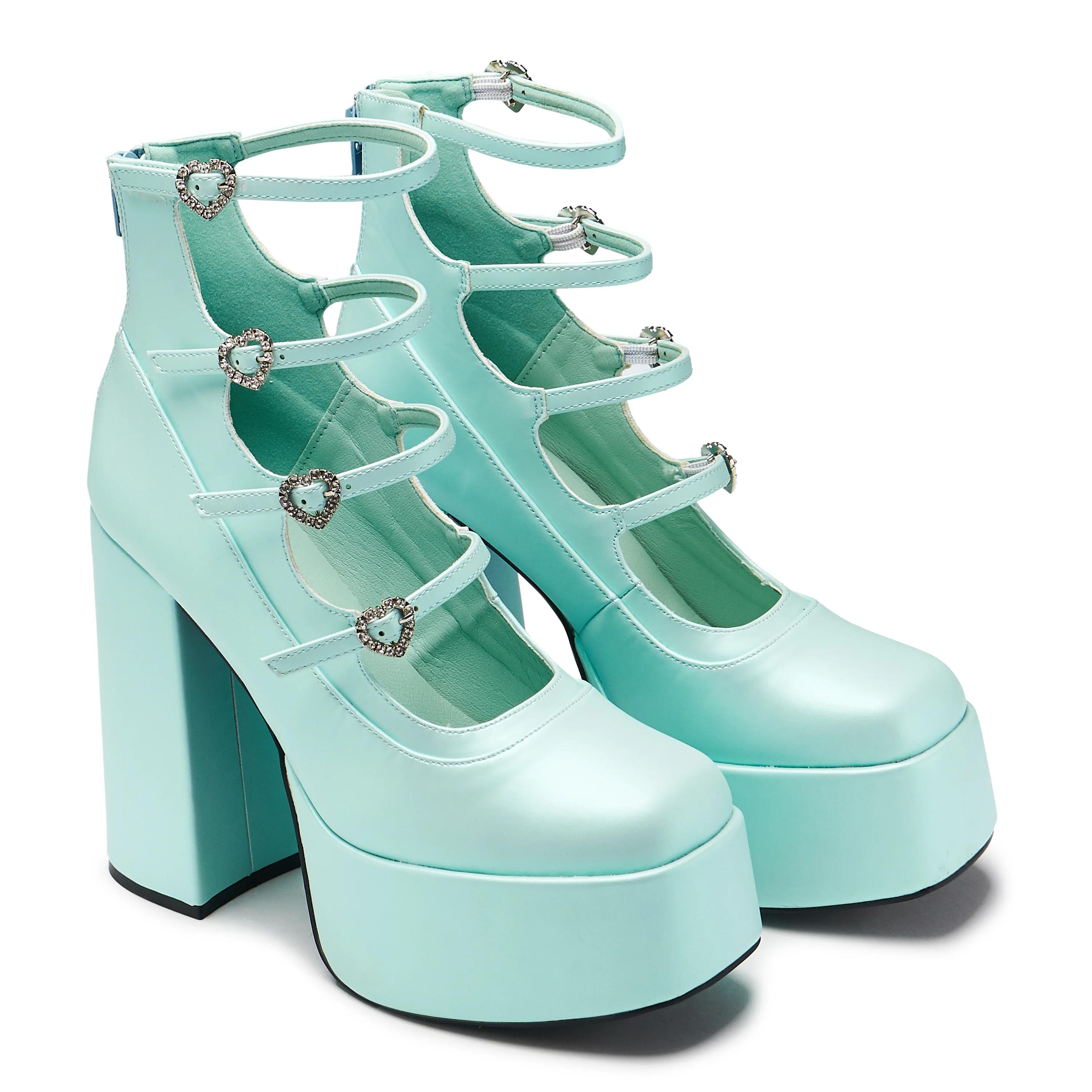 We heard how much you loved our Gurren heels, a versatile classic with multiple straps that add just the right amount of detail and edge. Now, we��ve given Gurren a fresh twist with a pastel princess inspired makeover. The heart shaped diamante buckles add a soft shimmer, and the cool minty green iridescent upper catches the light beautifully, creating a subtle, pearly sheen. The material feels smooth and comfortable, almost like it was made from a dream. Every detail is thoughtfully chosen so you can feel a touch of magic every time you wear them.