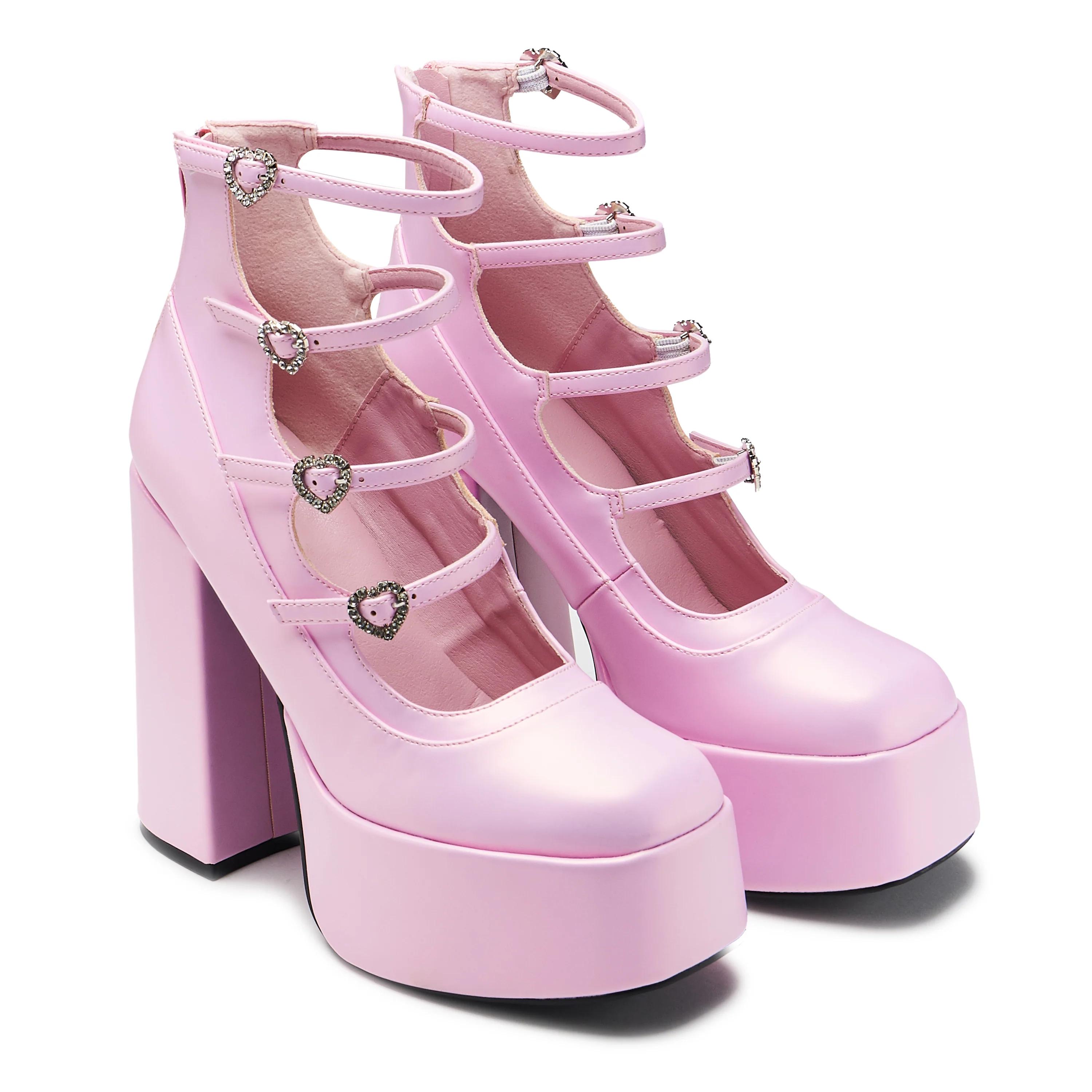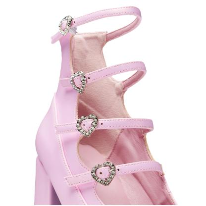 We heard how much you loved our Gurren heels, a versatile classic with multiple straps that add just the right amount of detail and edge. Now, we��ve given Gurren a fresh twist with a pastel princess inspired makeover. The heart shaped diamante buckles add a soft shimmer, and the iridescent upper catches the light beautifully, creating a subtle, pearly sheen. The material feels smooth and comfortable, almost like it was made from a dream. Every detail is thoughtfully chosen so you can feel a touch of magic every time you wear them.