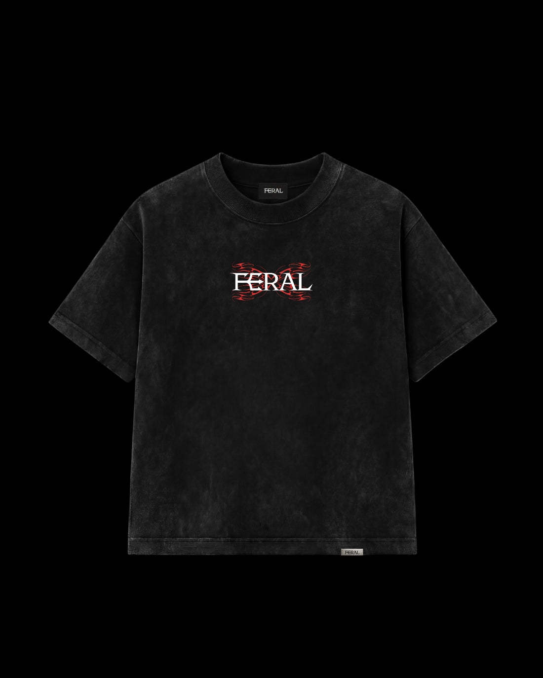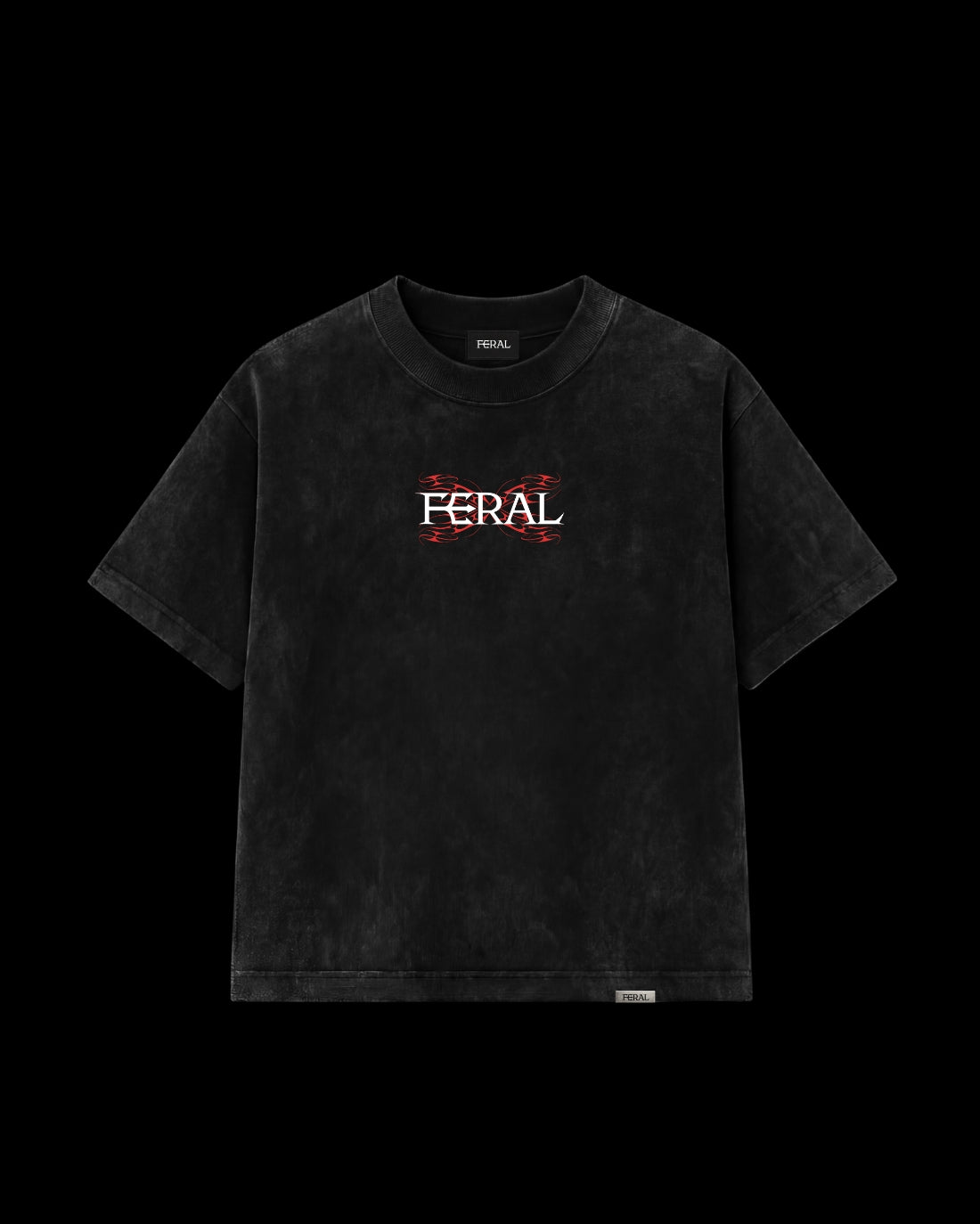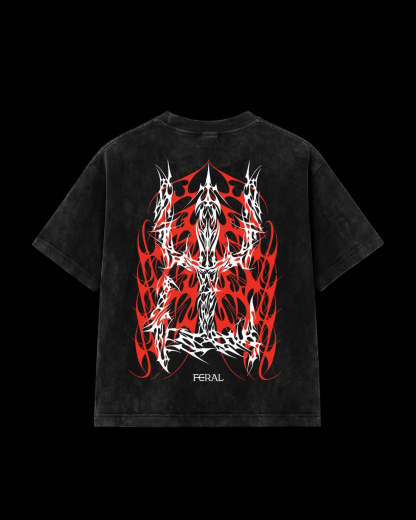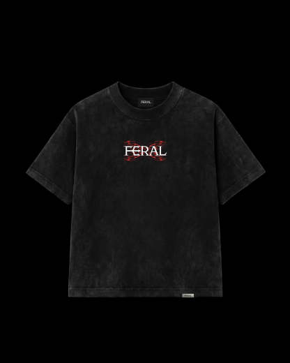 Made from 240gsm luxury cotton with stone wash finish, this tee features a cyber-sigilism redline feral monogram on the back and feral logo on the front.