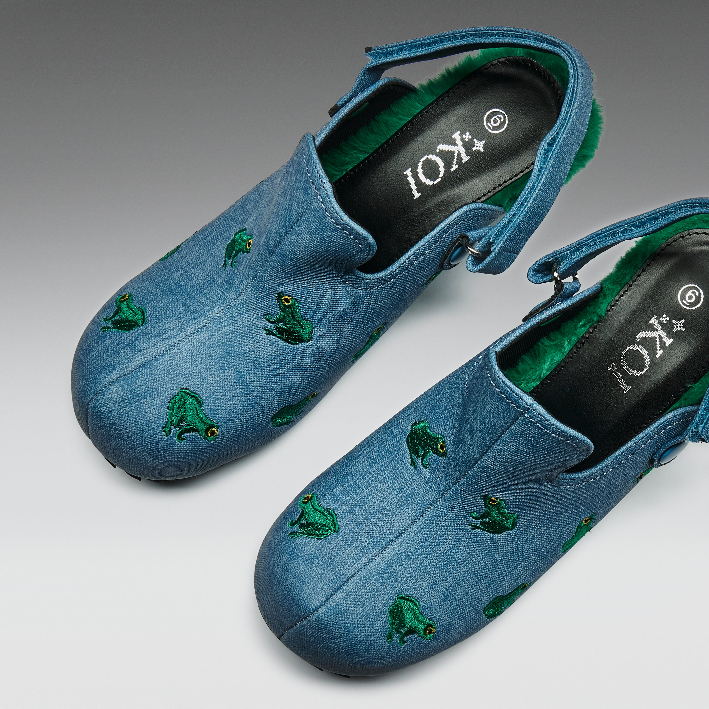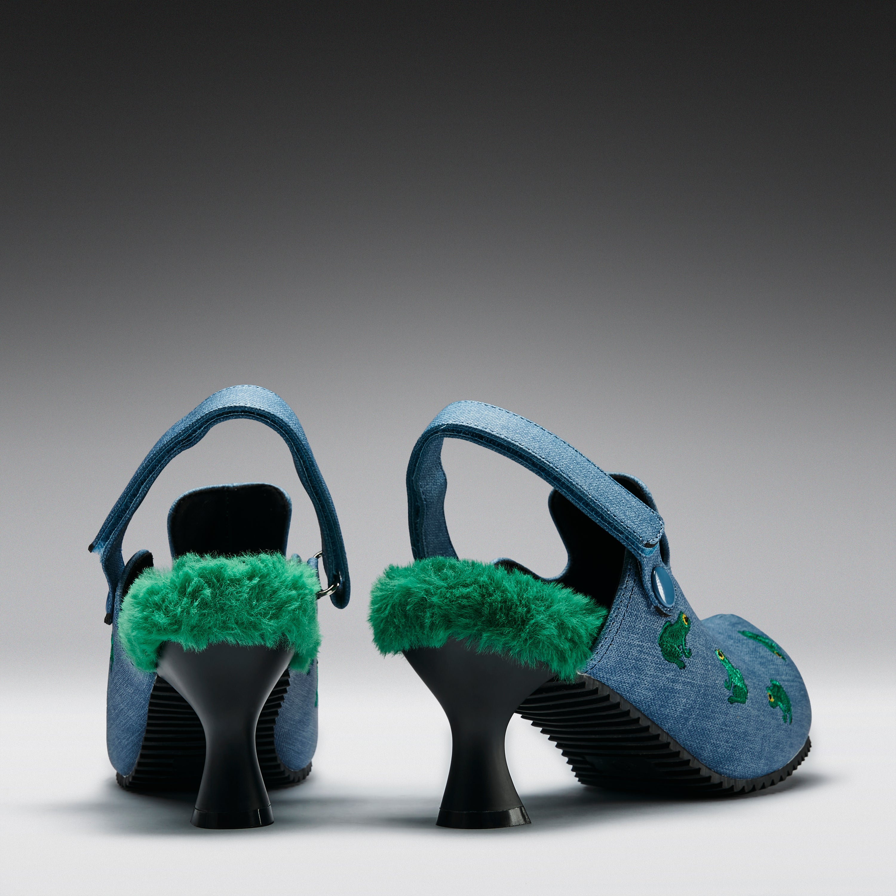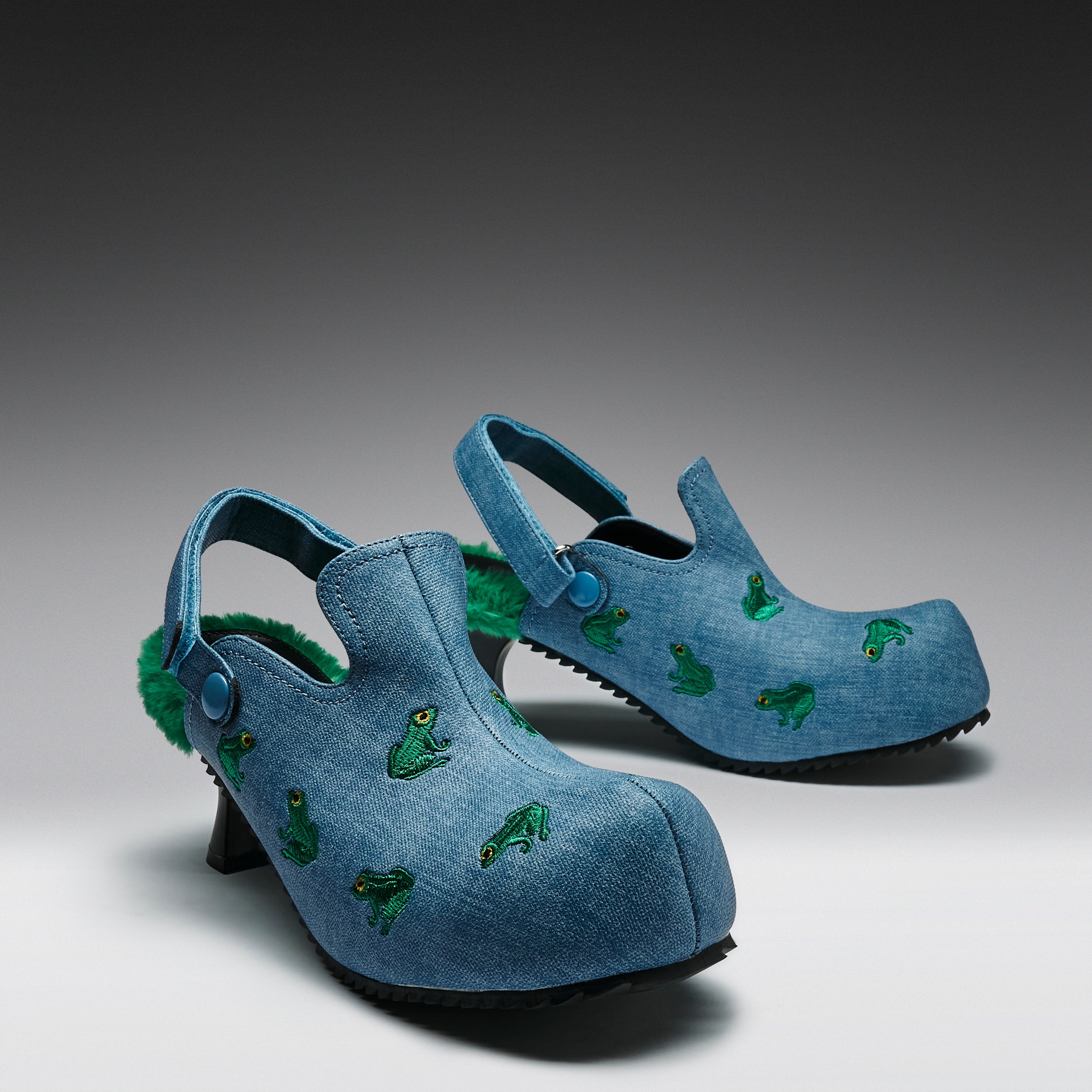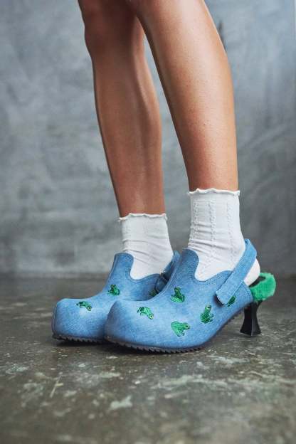 Ribbit Heeled Frog Mules- Denim