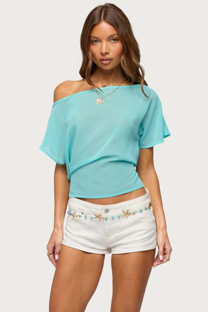 Noria Sheer Chiffon Off Shoulder Top