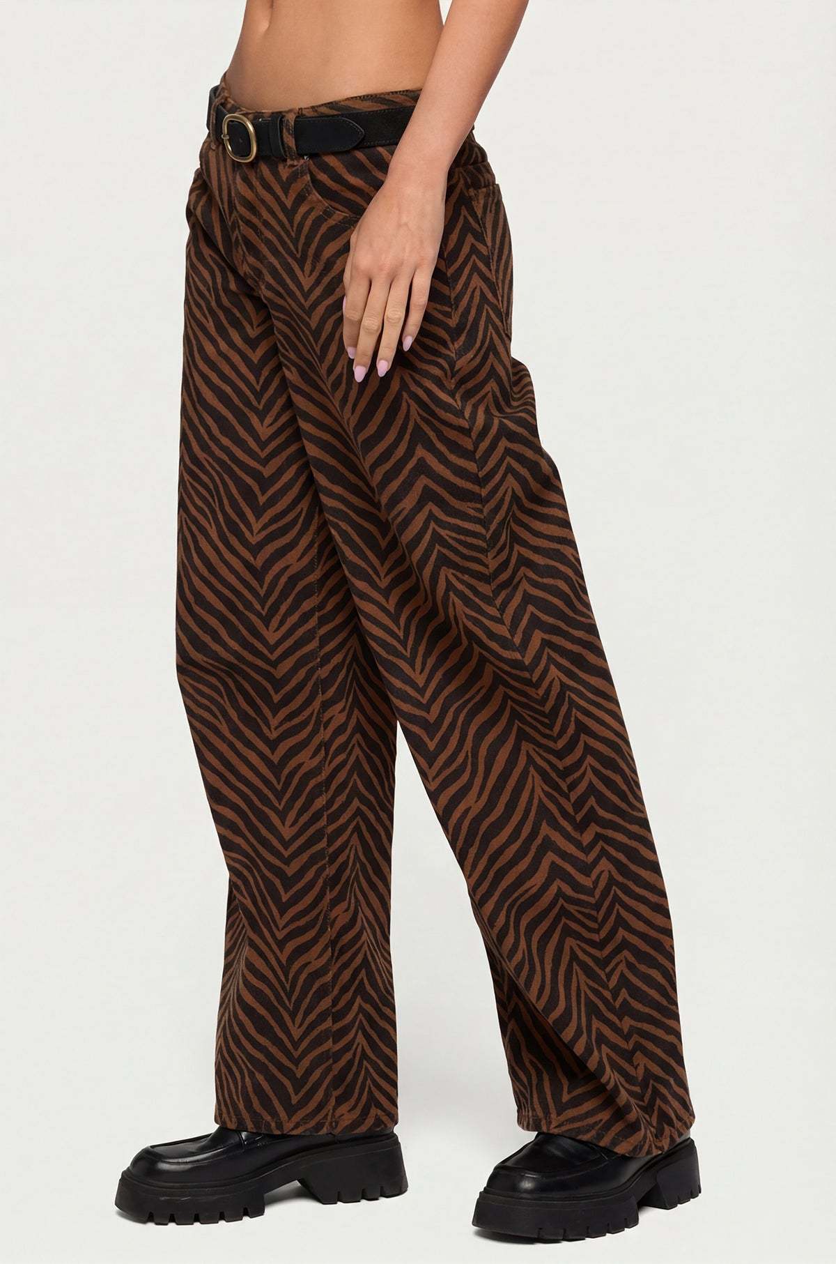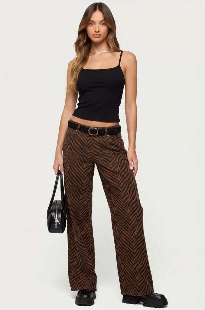 Zebra Print Low Rise Baggy Jeans