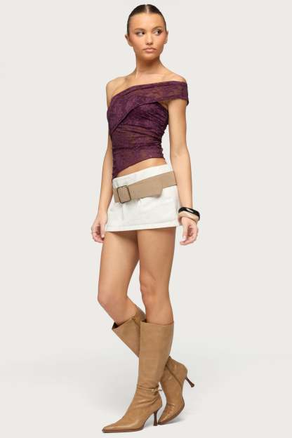 Asymmetric One Shoulder Sheer Lace Top