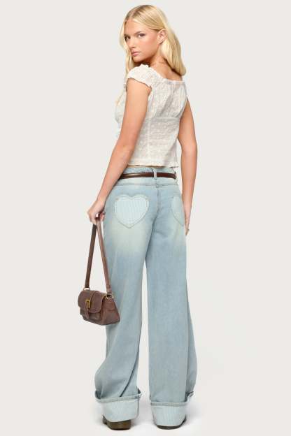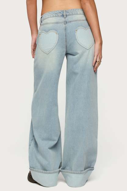 Contrast Heart Low Rise Baggy Jeans