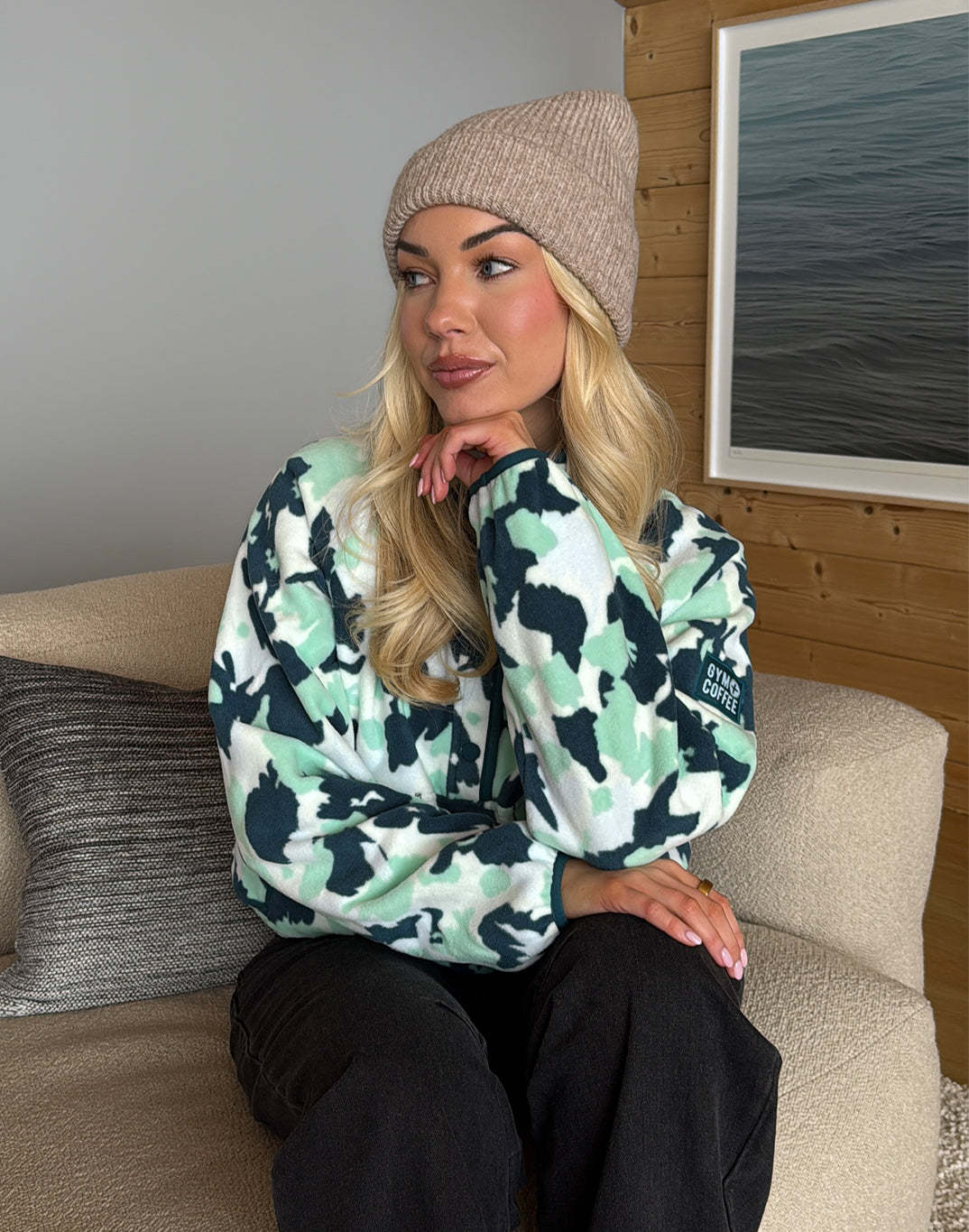 The Snap Polar Fleece in Teal Pop Print blends rich teal tones with subtle pops of colour for an easy standout look.