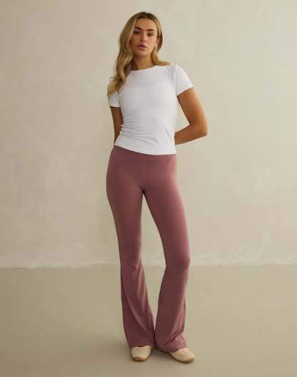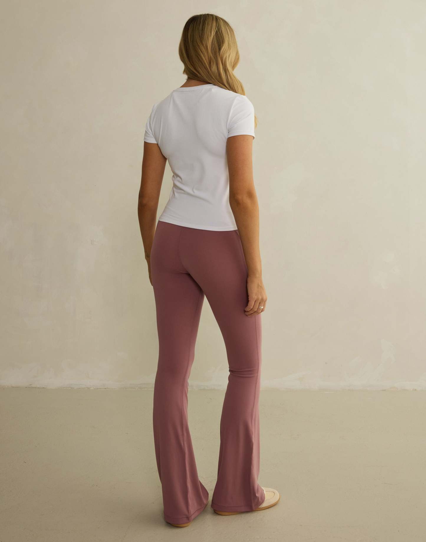 Designed to move with you, the Soft-Motion Flare Legging in Terra Rose blends comfort, stretch, and effortless style. This flattering flare silhouette elongates the leg while offering a smooth, supportive feel you will want to wear all day.