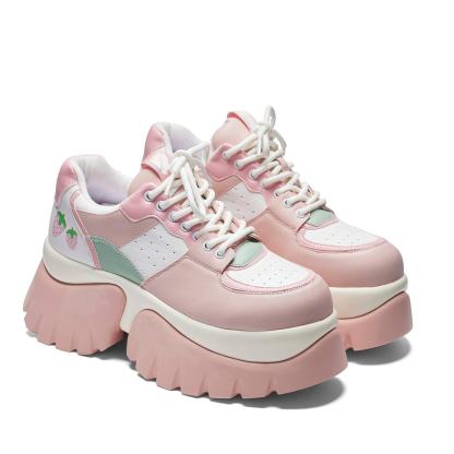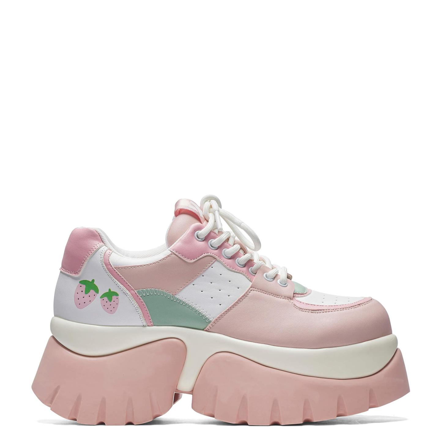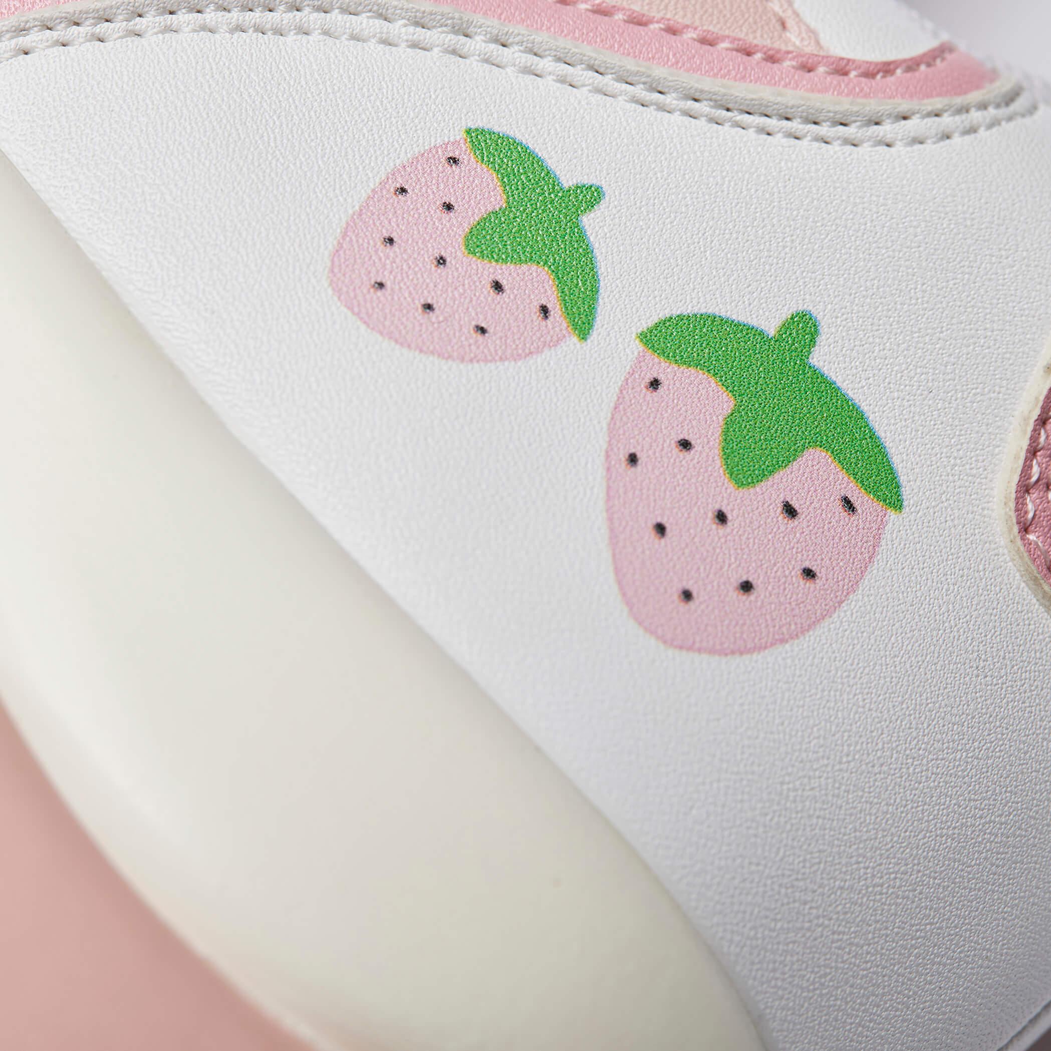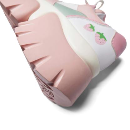 These chunky trainers are the perfect blend of kawaii inspiration and everyday practicality. Featuring soft pink tones paired with adorable strawberry graphics, they deliver a super cute pastel look that��s sure to brighten any outfit. The solid, sturdy rubber outsole provides dependable support, while the extra cushioning around the ankle and insole ensures comfort at every turn, making them easy to walk in for daily wear. With a charming combination of soft pink and white, these trainers add a fun pop of colour to your wardrobe while keeping you comfortable all day long.