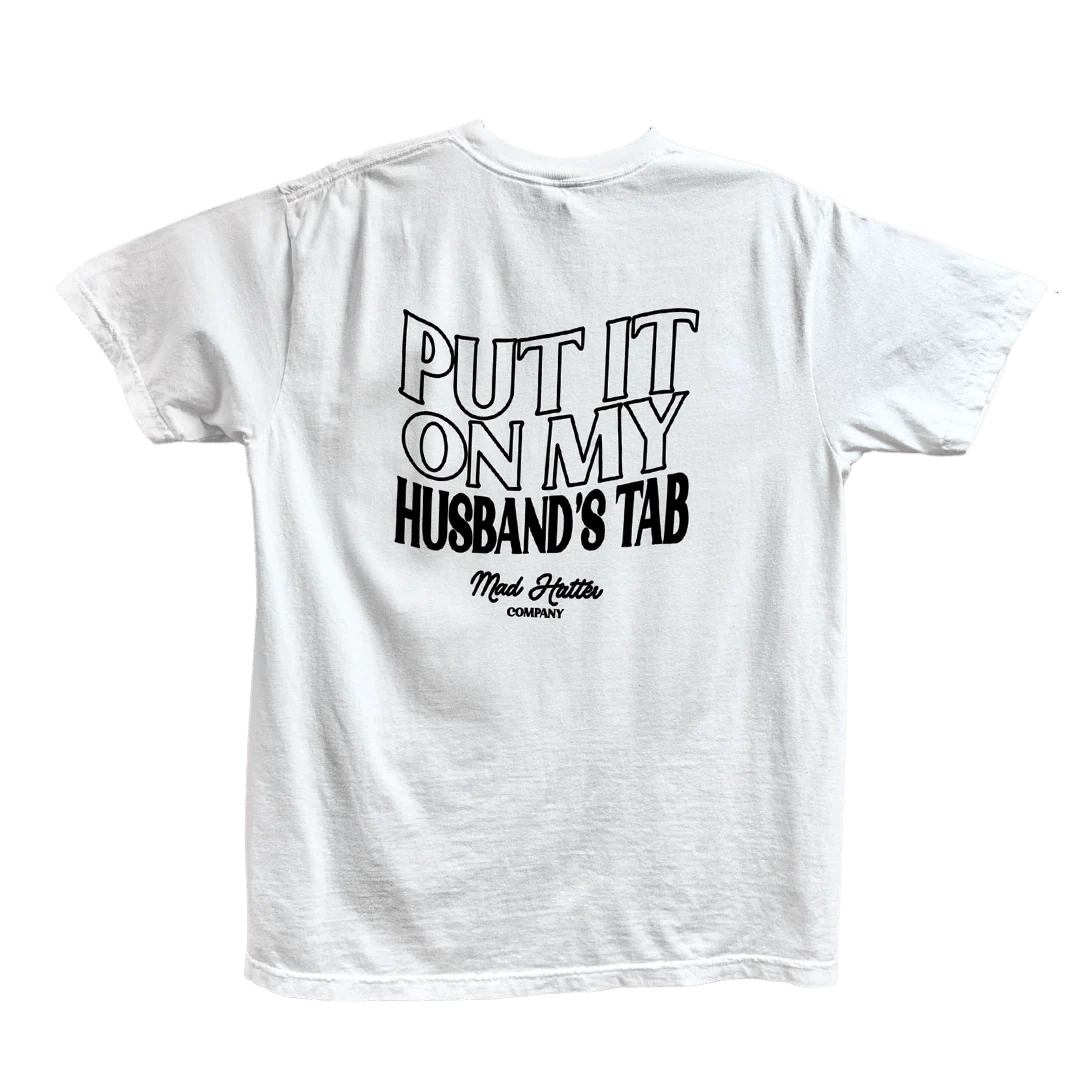 Elevate your casual look with the Put it on my Husband's Tab t-shirt to match your Husbands Tab Hat. This shirt is perfect for adding a touch of style to your outfit.