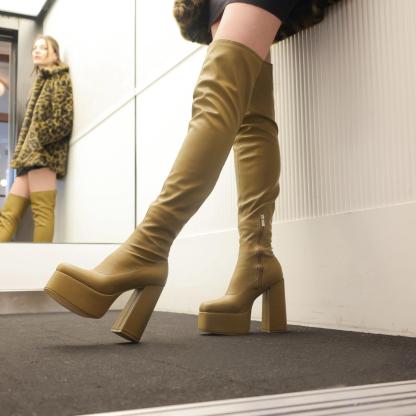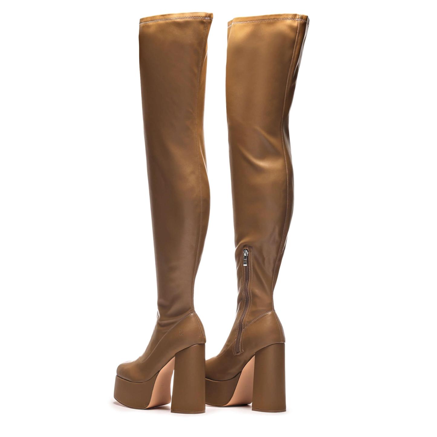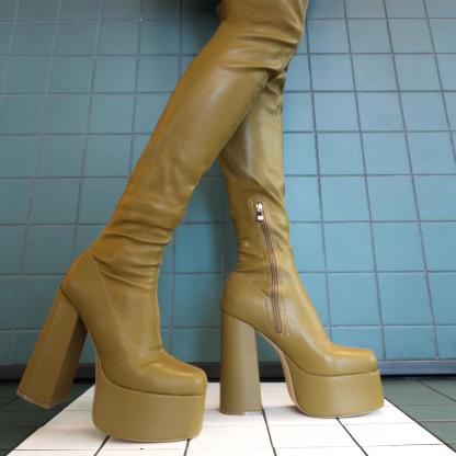 The Refined Khaki UniFlex Plus Size Thigh High Boots is the successor to our original 'Redemption' Boots, the 5" inch heel pulls no punches in being what is, towering long boot perfection! The platforms is a supporting 2" meaning despite the towering heights these aren't the most difficult to walk in, but if you're looking at these, odds are you're already a pro in handling heights like this!