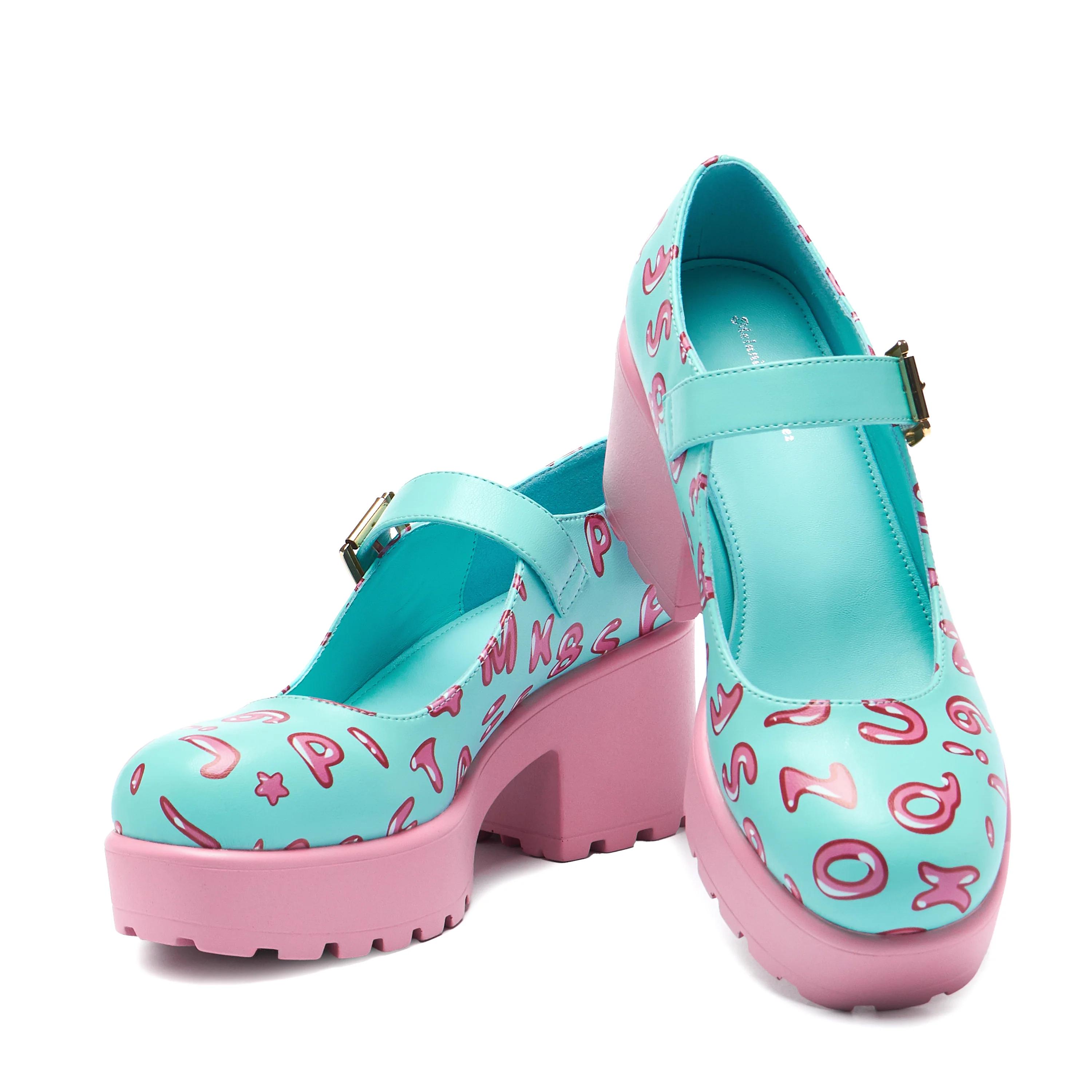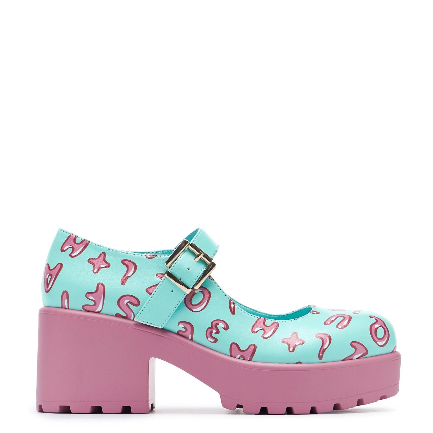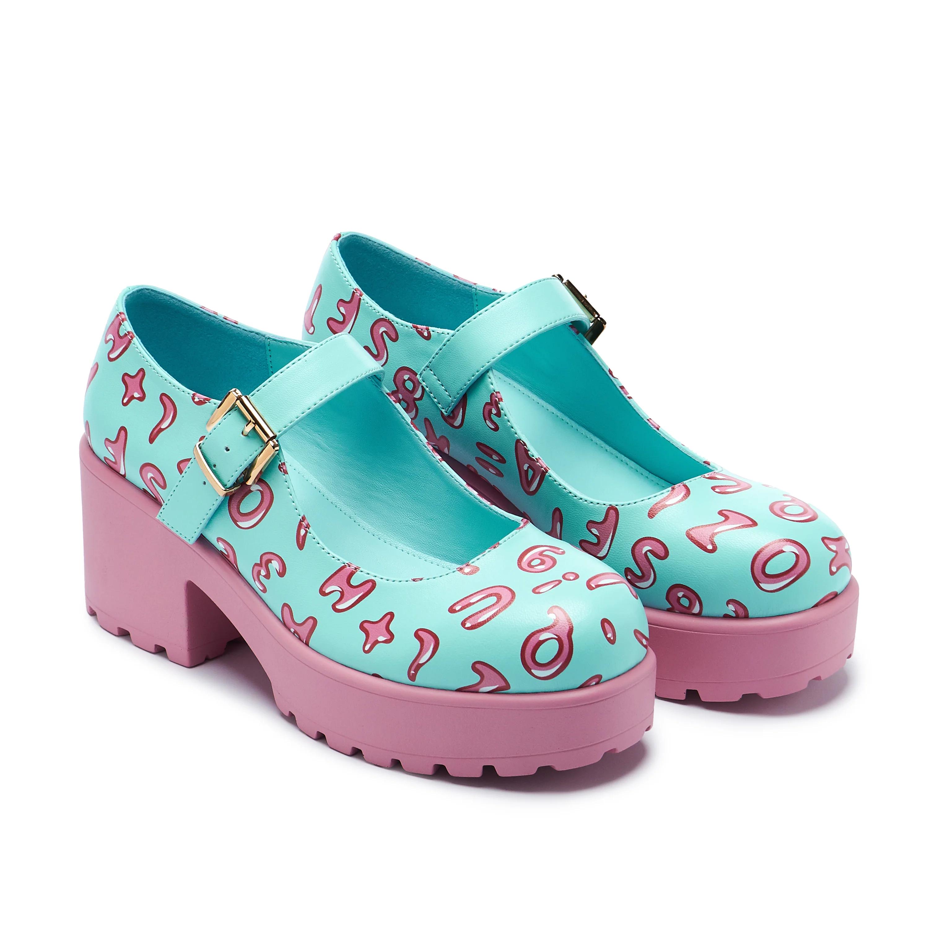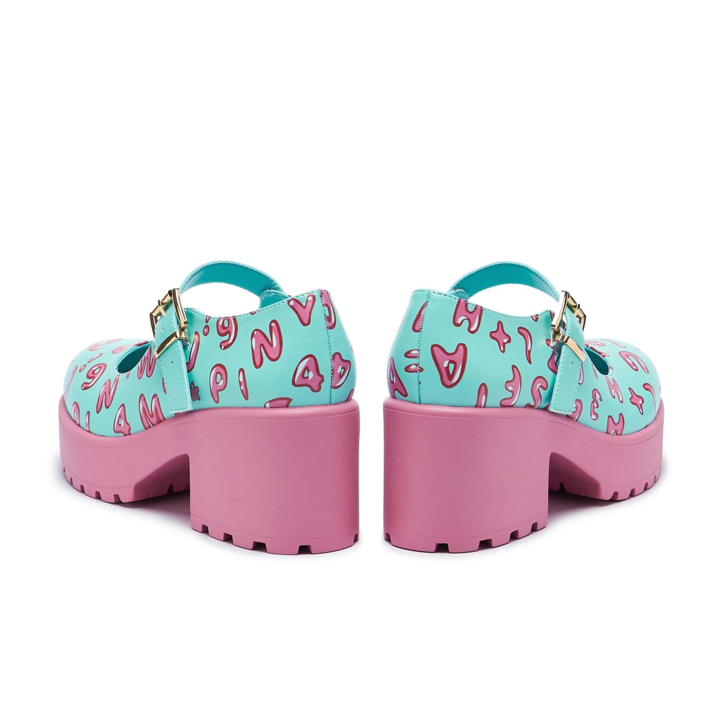 The Melanie Martinez X KOI Tira Mary Janes 'Melanie Alphabet Edition' are BACK. This highly requested, fan-favourite consists of a sweet pink sole and baby blue base, complete with a silver buckle and iconic alphabet lettering.