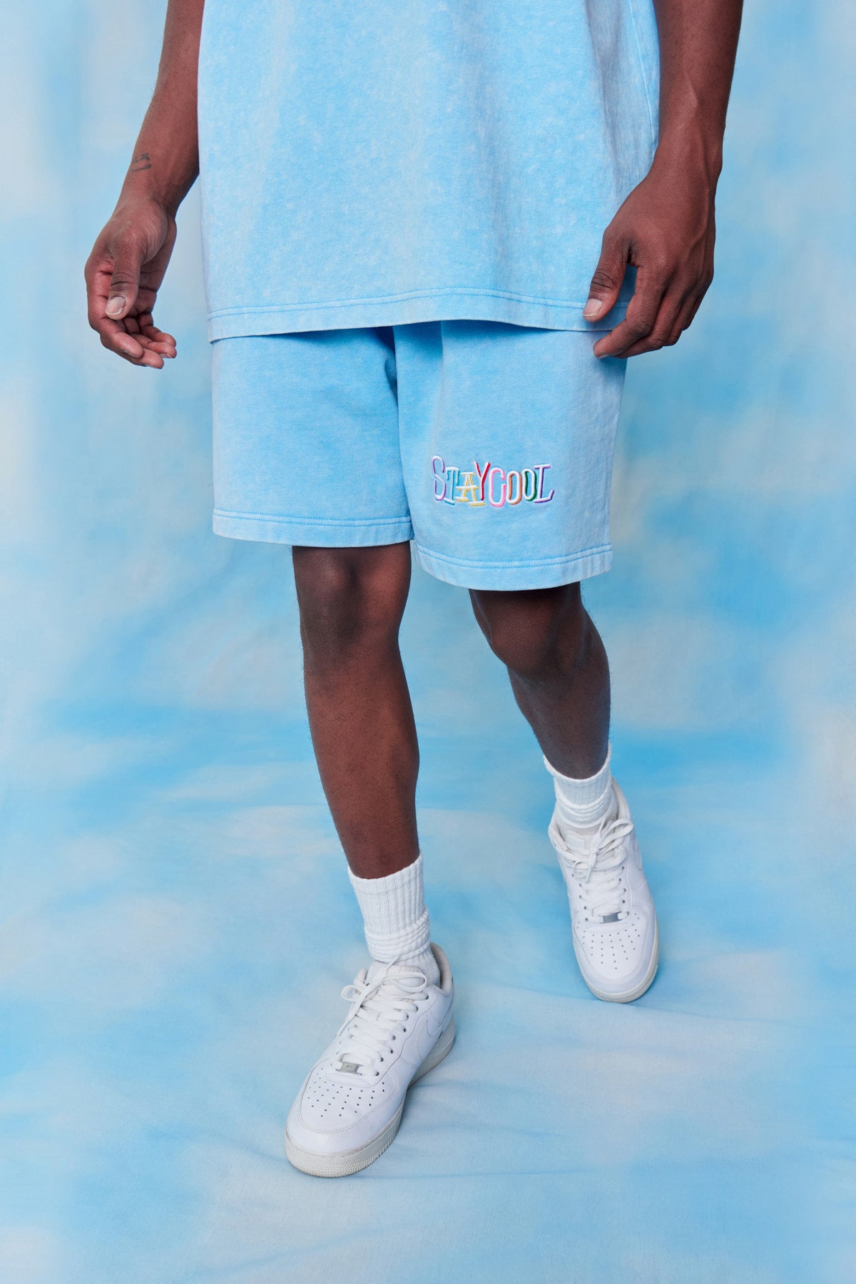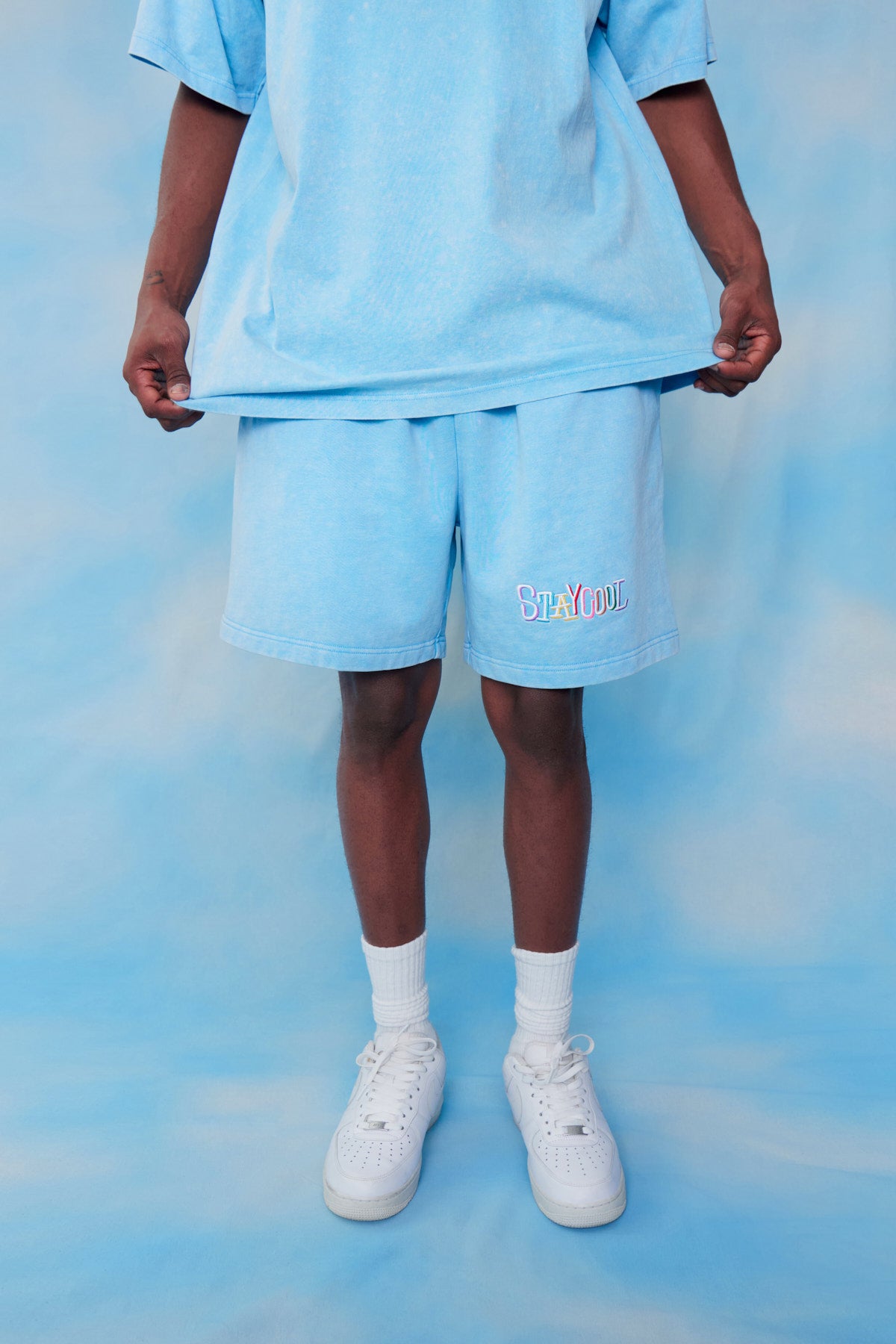 Tribal Acid Wash Shorts (Sky Blue)