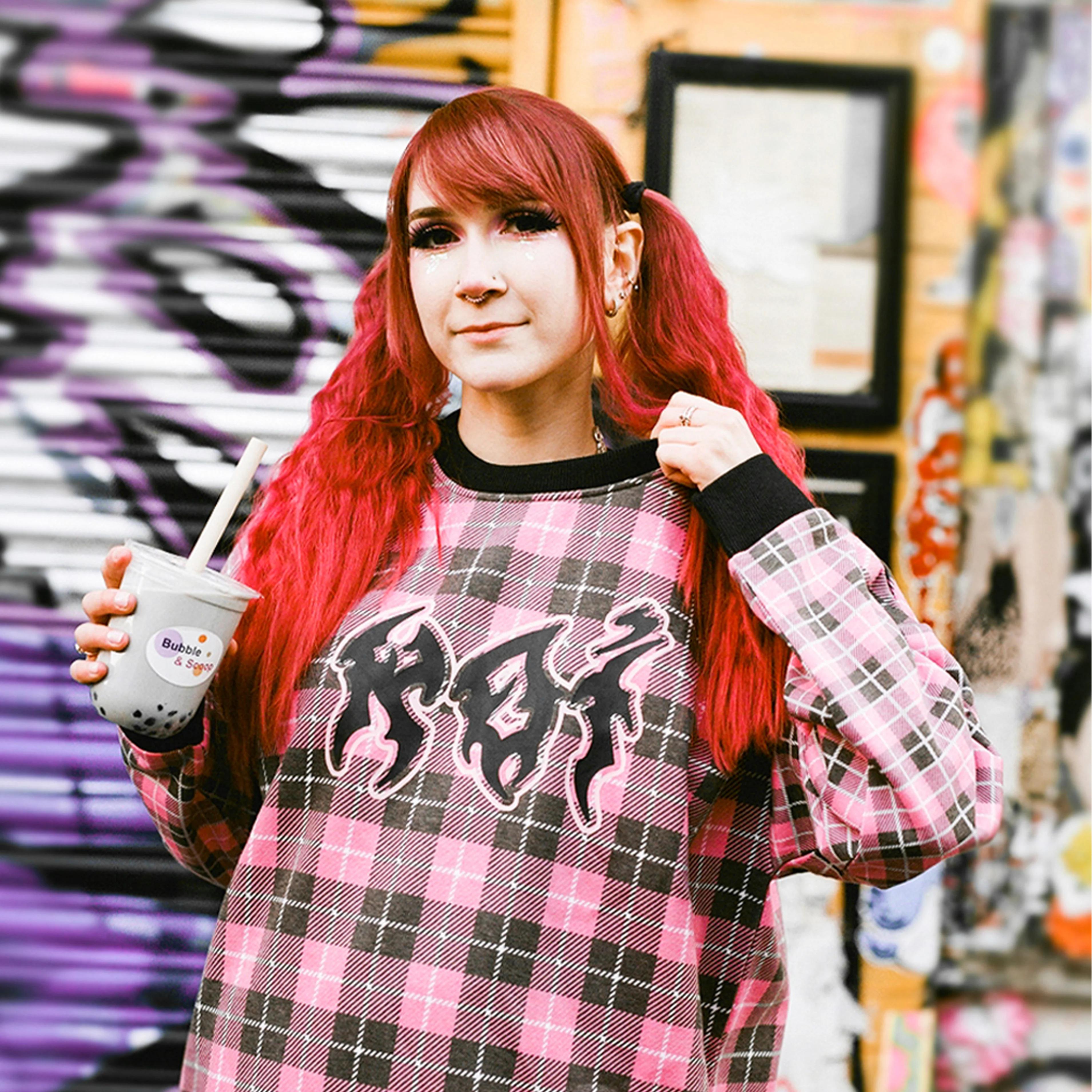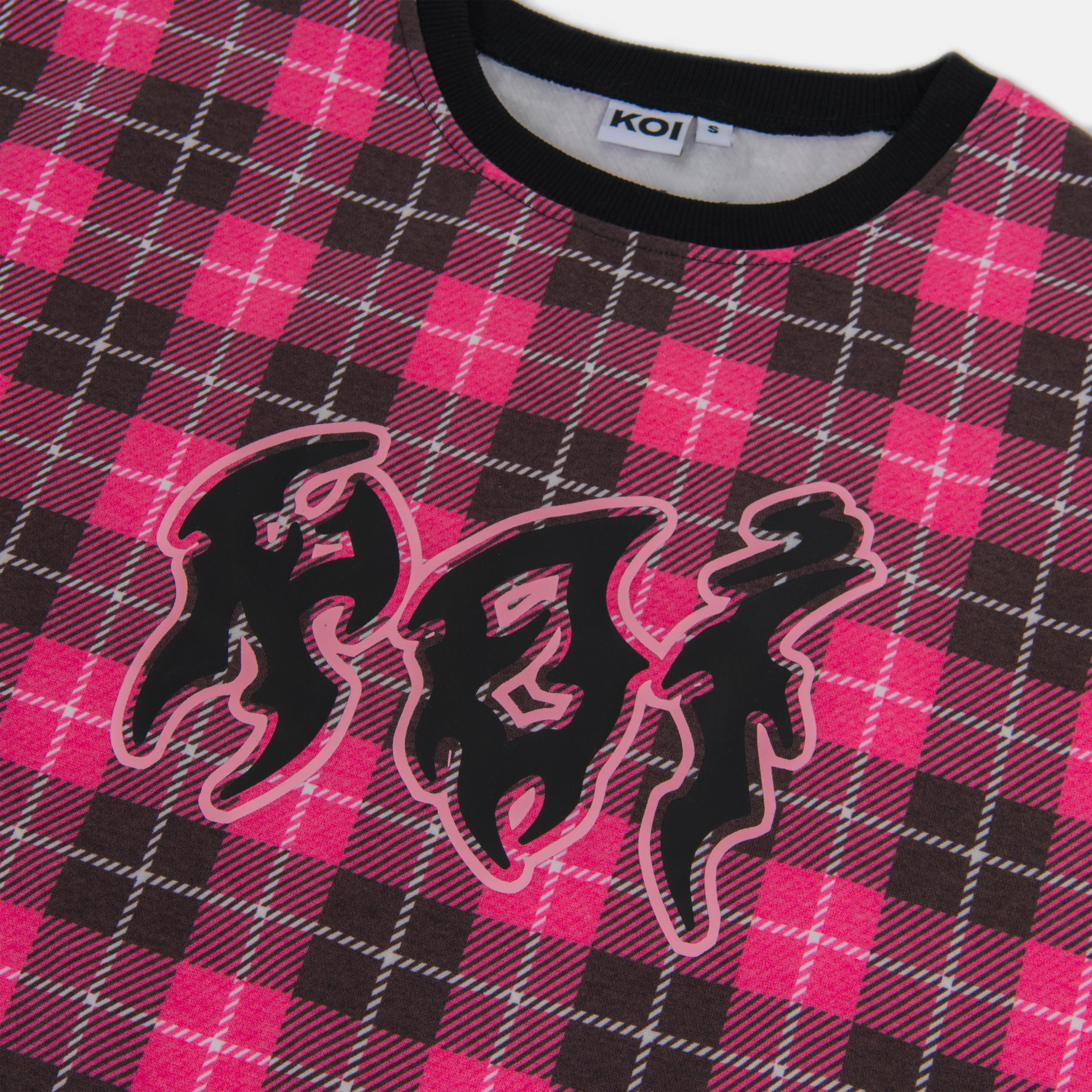 This Yami Oversized Sweatshirt is perfect for making a statement wherever you go. Its oversized fit flatters any figure and the unique mix of KOI and tartan prints ensures all eyes will be on you. Crafted with ribbed cuffs, this sweatshirt is designed for maximum comfort and style. Be the envy of your friends in this fashionable must-have.